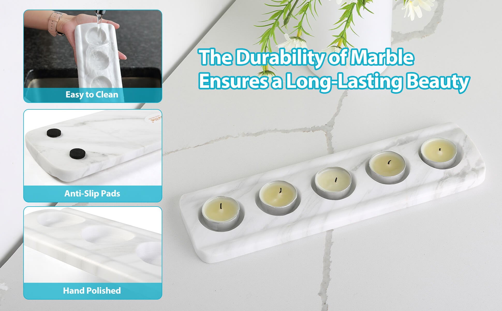Sturdy and Durable: Marble is a natural and enduring material that offers greater sustainability compared to glass or ceramic. This candle holder tray ensures stability, preventing tipping or wobbling, providing a lasting decorative element for your home.