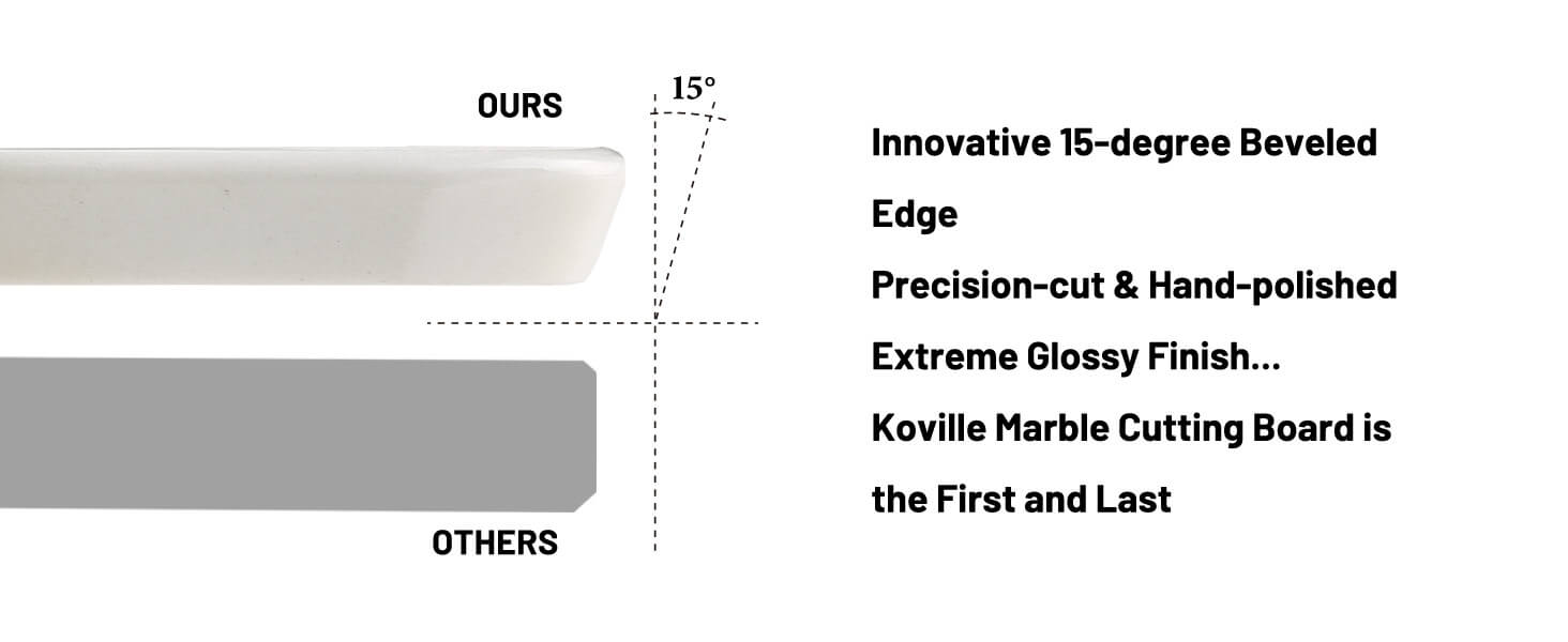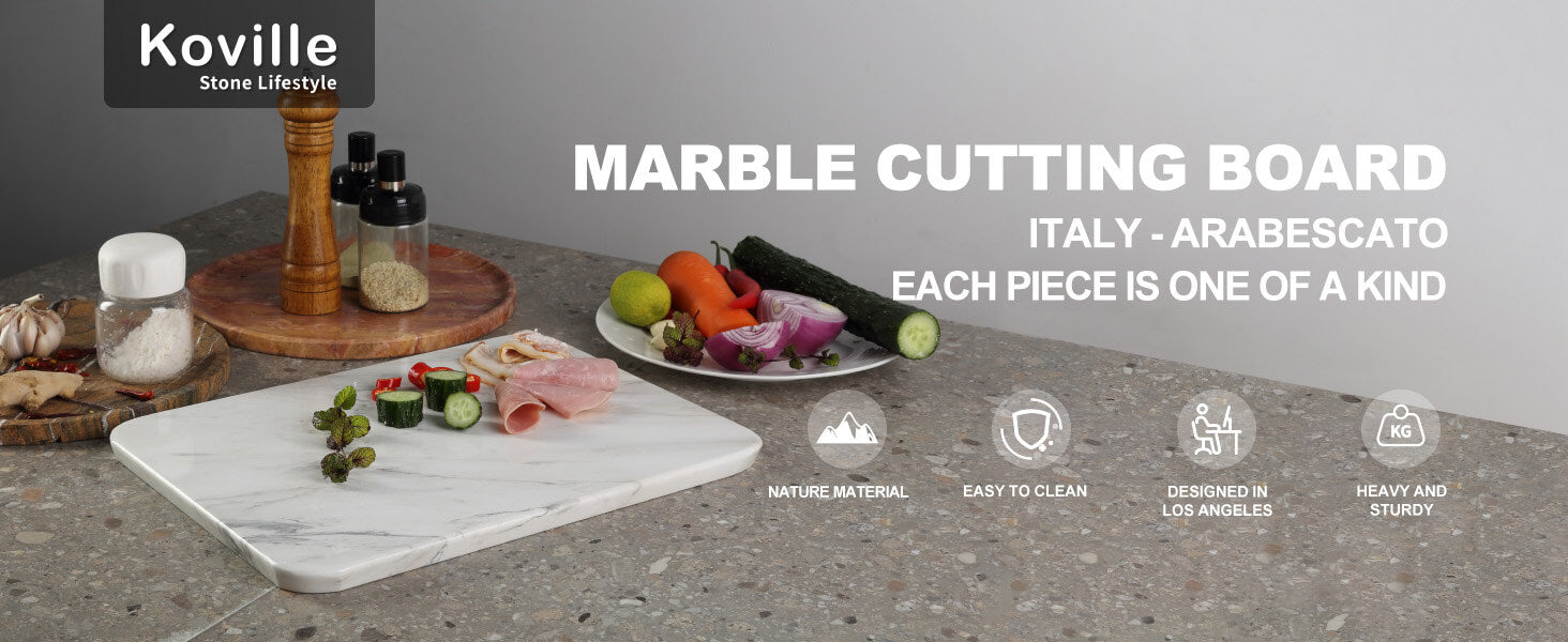 CRAFTED 15°BEVELED-EDGE: Koville marble cutting board for kitchen is crafted with innovative polished beveled edge, not only enhances the aesthetics of the board but also serves a functional purpose. The beveled edges provide a comfortable grip and make lifting and moving the board a breeze.