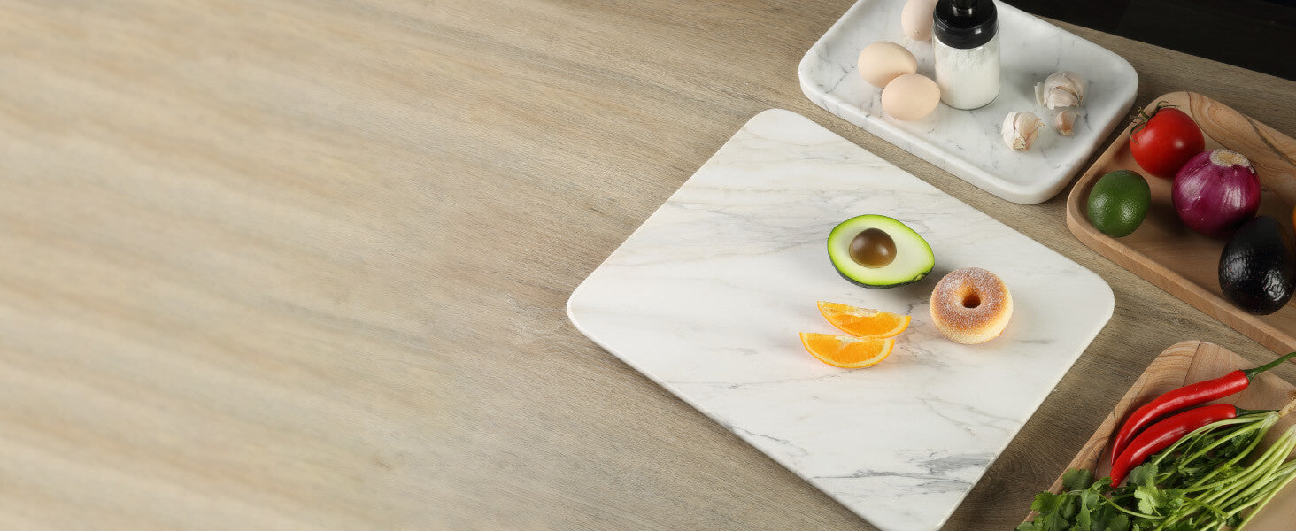 No two pieces are exactly alike. Thanks to its unique, crafted appearance, this pastry board adds great aesthetic appeal to the interior of any establishment. Not just a practical tool, the unique marble cutting board serves as an attractive decoration, becoming a highlight in your kitchen.