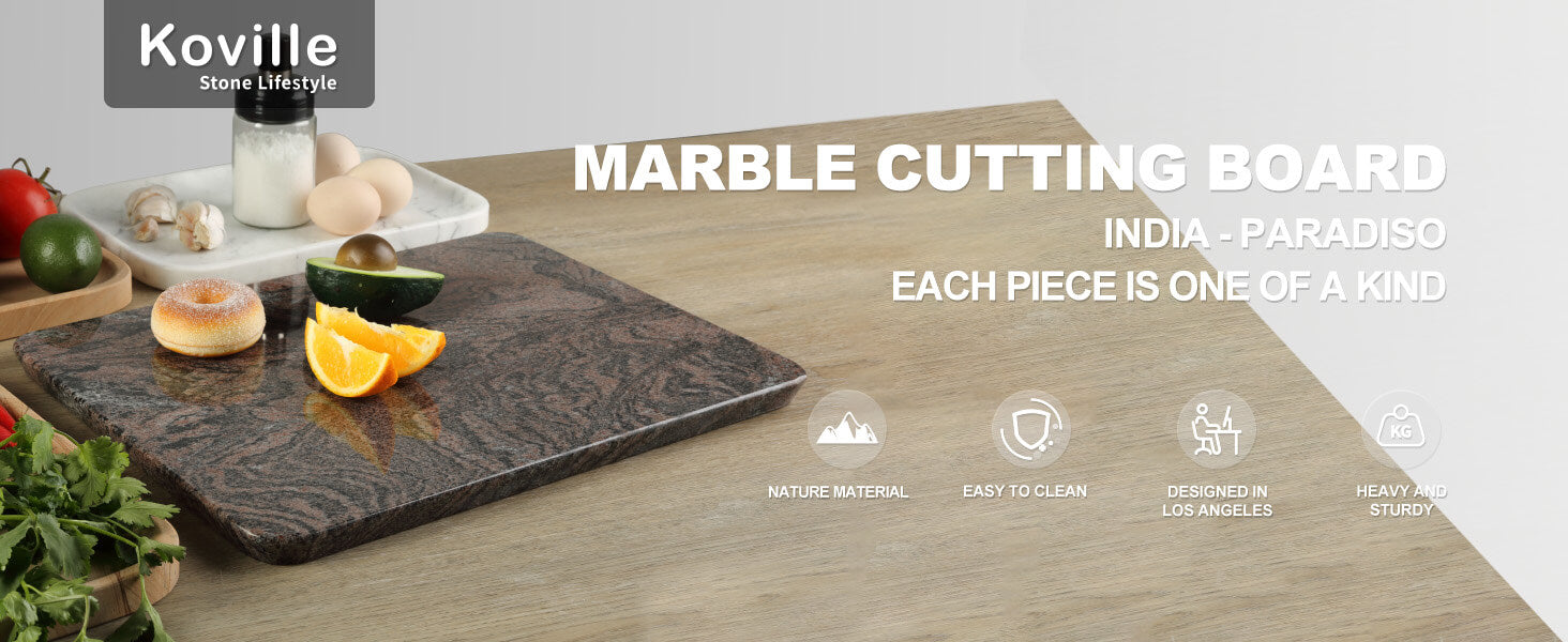 CRAFTED 15°BEVELED-EDGE: Koville granite cutting board for kitchen is crafted with innovative polished beveled edge, not only enhances the aesthetics of the board but also serves a functional purpose. The beveled edges provide a comfortable grip and make lifting and moving the board a breeze.