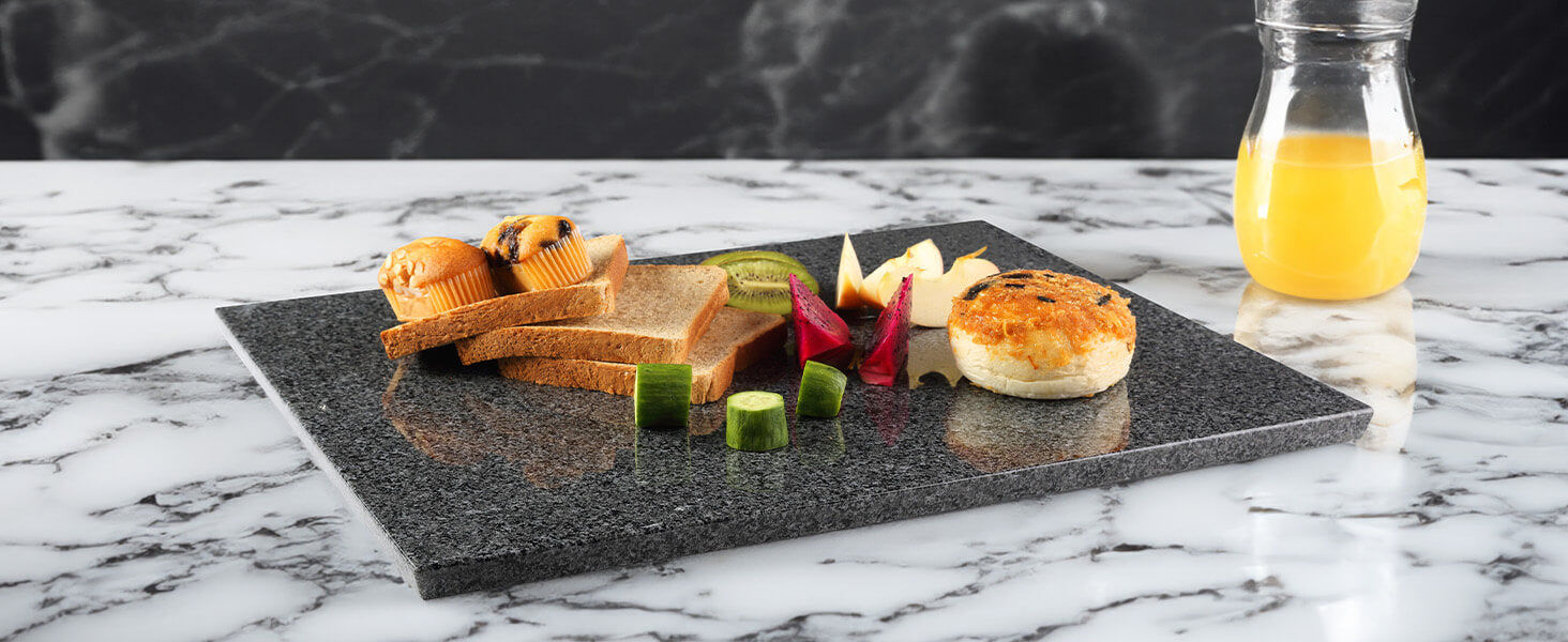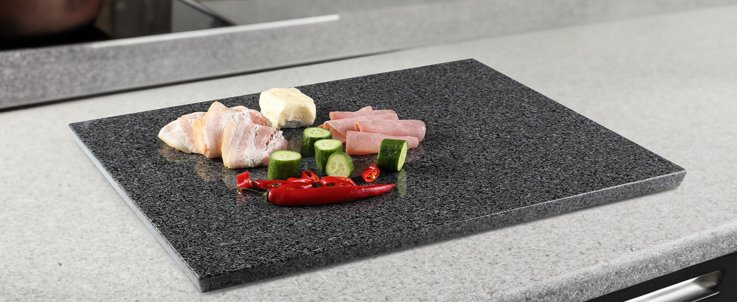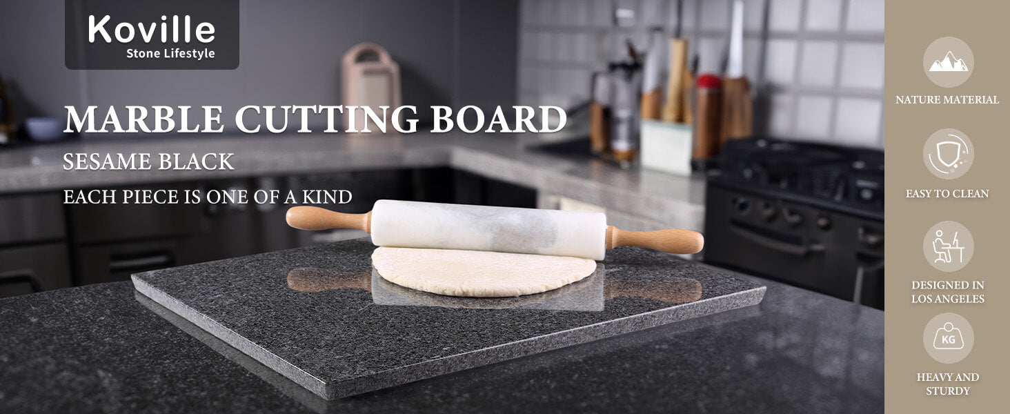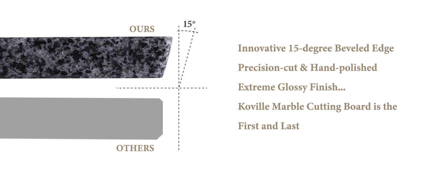 CRAFTED 15°BEVELED-EDGE: Koville granite cutting board for kitchen is crafted with innovative polished beveled edge, not only enhances the aesthetics of the board but also serves a functional purpose. The beveled edges provide a comfortable grip and make lifting and moving the board a breeze.