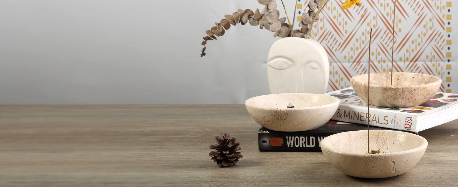 Versatile Stone Bowl: incense burning, peace coming. The incense holder for sticks can be widely used in living room, bedroom, office, meditation room, yoga room, hotel etc. you could use this as a jewelry dish or candy dish even. Or use it as your elegant jewerly bowl!
