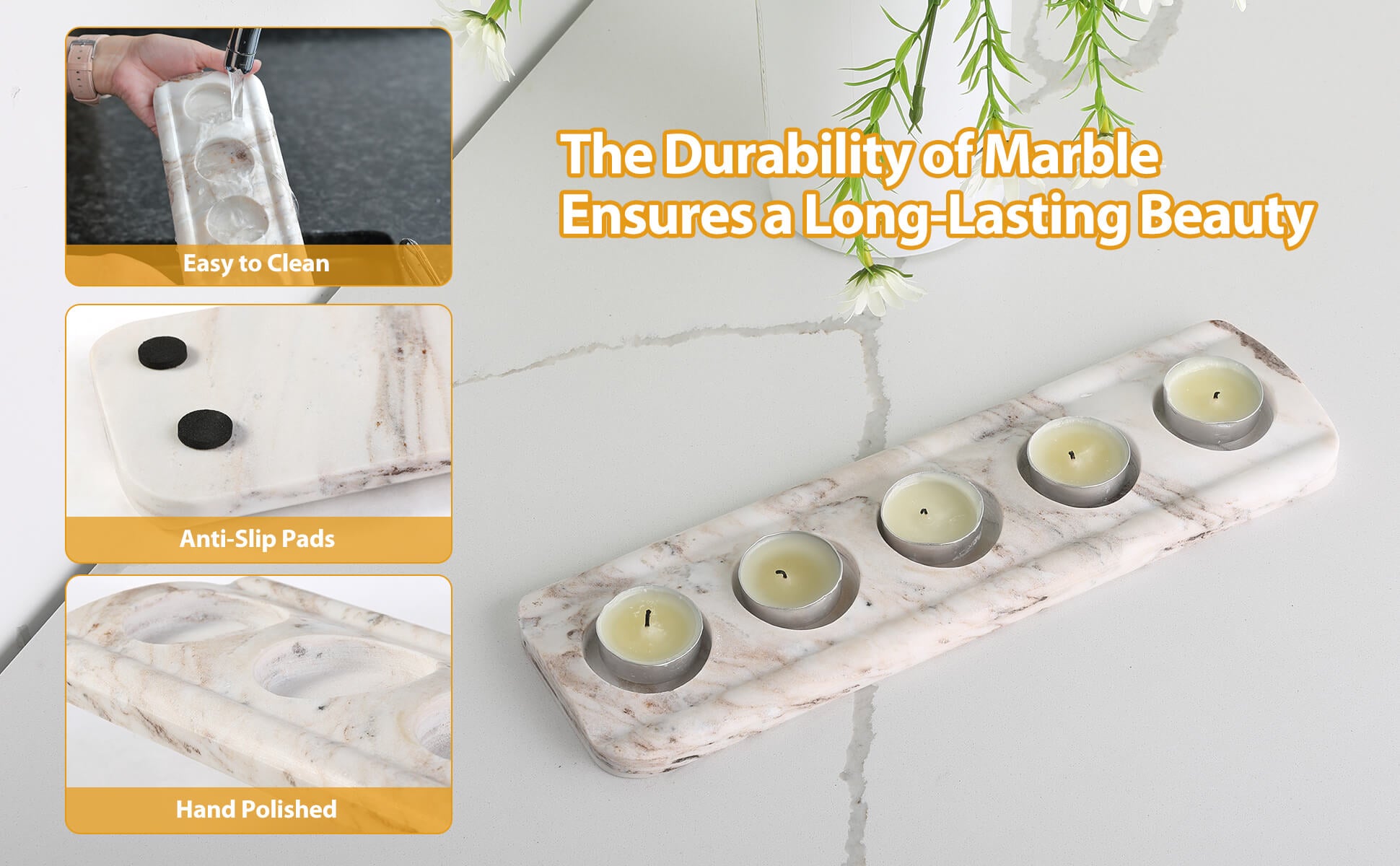 Sturdy and Durable: Marble is a natural and enduring material that offers greater sustainability compared to glass or ceramic. This candle holder tray ensures stability, preventing tipping or wobbling, providing a lasting decorative element for your home.