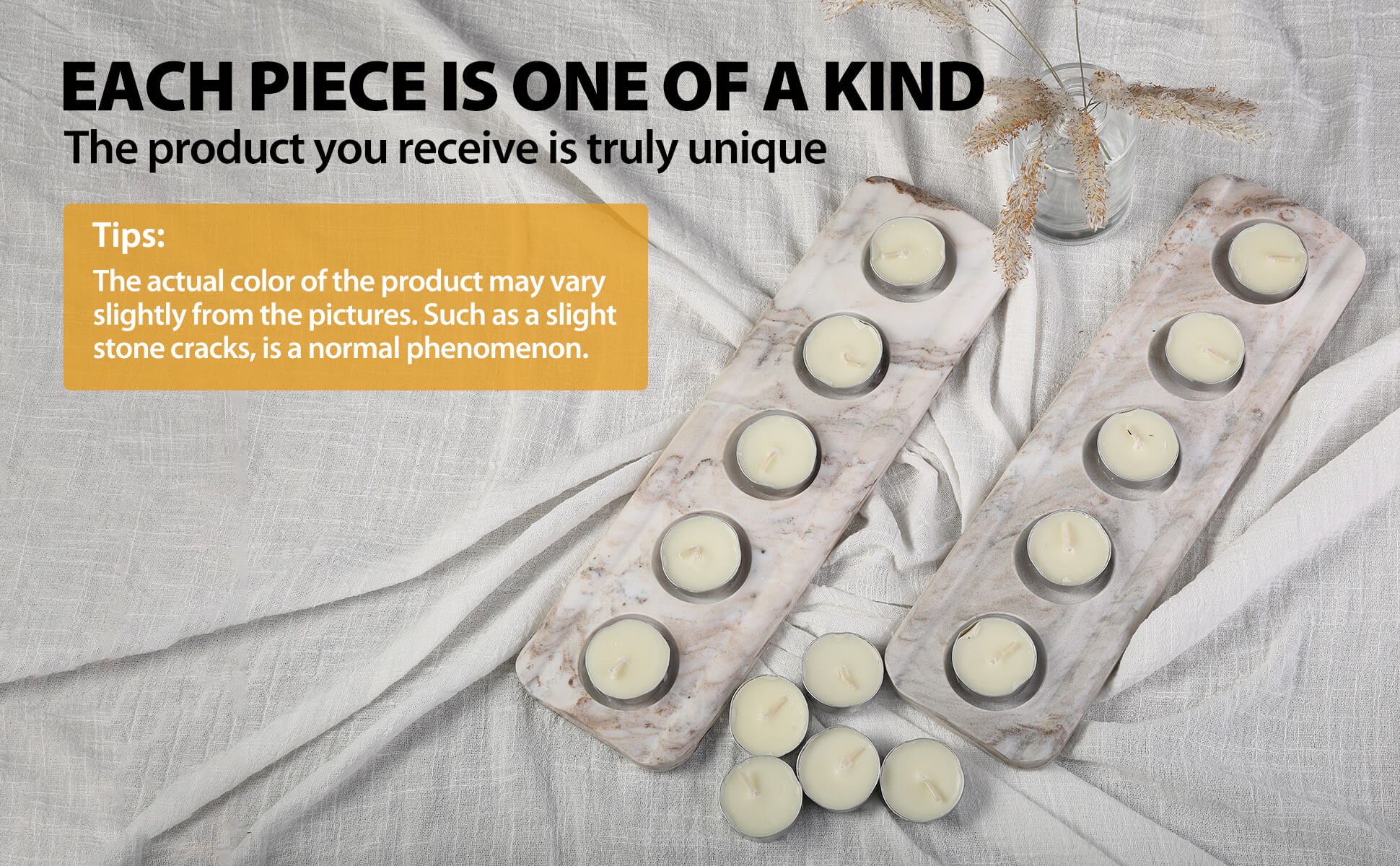 Each Piece is Unique: Made from high-quality marble, each candle holder has a unique vein pattern, making it a one-of-a-kind piece that adds a touch of luxury to any setting.