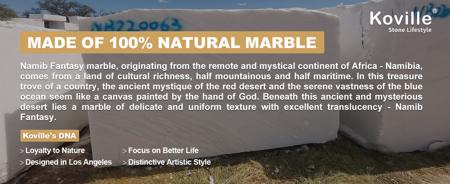 Luxury Namib Fantasy: Namib Fantasy marble born in the distant and mysterious African continent - Namibia. There is real luxurious white marble under this ancient and mysterious desert - Namib Fantasy. Koville's passion for natural stone drives us to provide you with luxurious and stylish stone products.