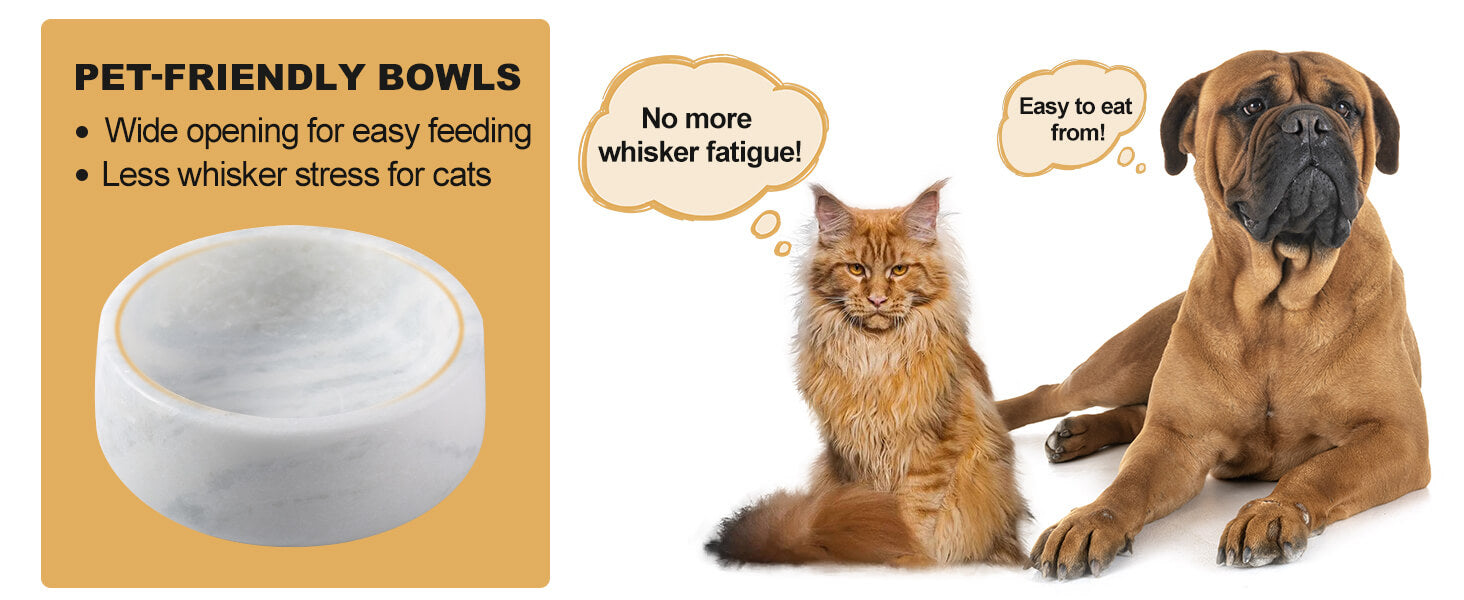 Easy Clean: The smooth surface of the marble makes the pet feeding bowl not easy to stick and keep it clean.Easy to clean, the bowl is easy to keep clean and hygienic.We know how important your pet's health is to you.