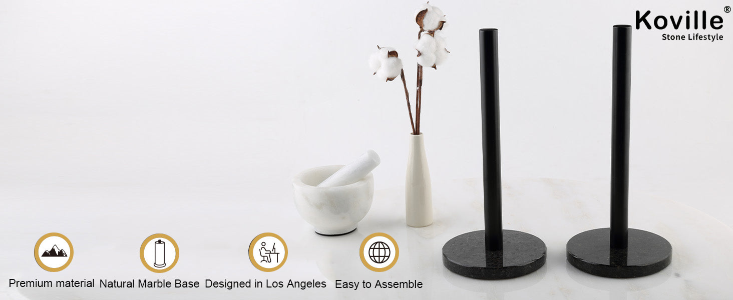 Minimalist Design Meets Practicality: The Koville granite paper towel holder combines a modern, simple look with unmatched utility. Its sturdy granite base offers non-slip pads, while the central rod accommodates a variety of paper towel sizes with ease. Whether cleaning up spills or organizing your space, it provides both style and functionality.