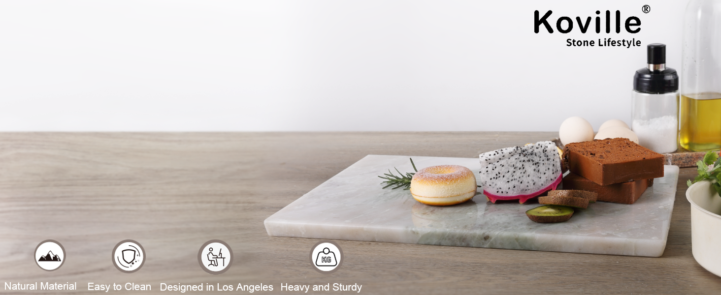Exceptional Stability for Confident Cooking: Designed with a substantial weight, the sterile and harmless Koville natural marble rectangle pastry board stays firmly in place during use. Whether rolling delicate pastries or chopping ingredients, its solid construction provides a stable and secure surface. This ensures safety and efficiency in your cooking experience, allowing you to focus on creating your best dishes.