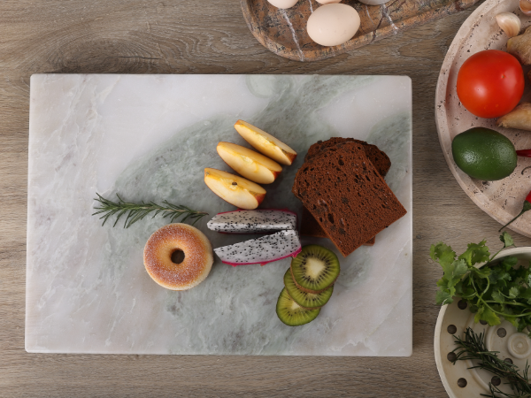 The standout feature of this pastry board is its one-of-a-kind marble veining, ensuring that no two boards are alike. Each board showcases a stunning array of colors and patterns, a true reflection of nature’s artistry that brings character and elegance to your kitchen.