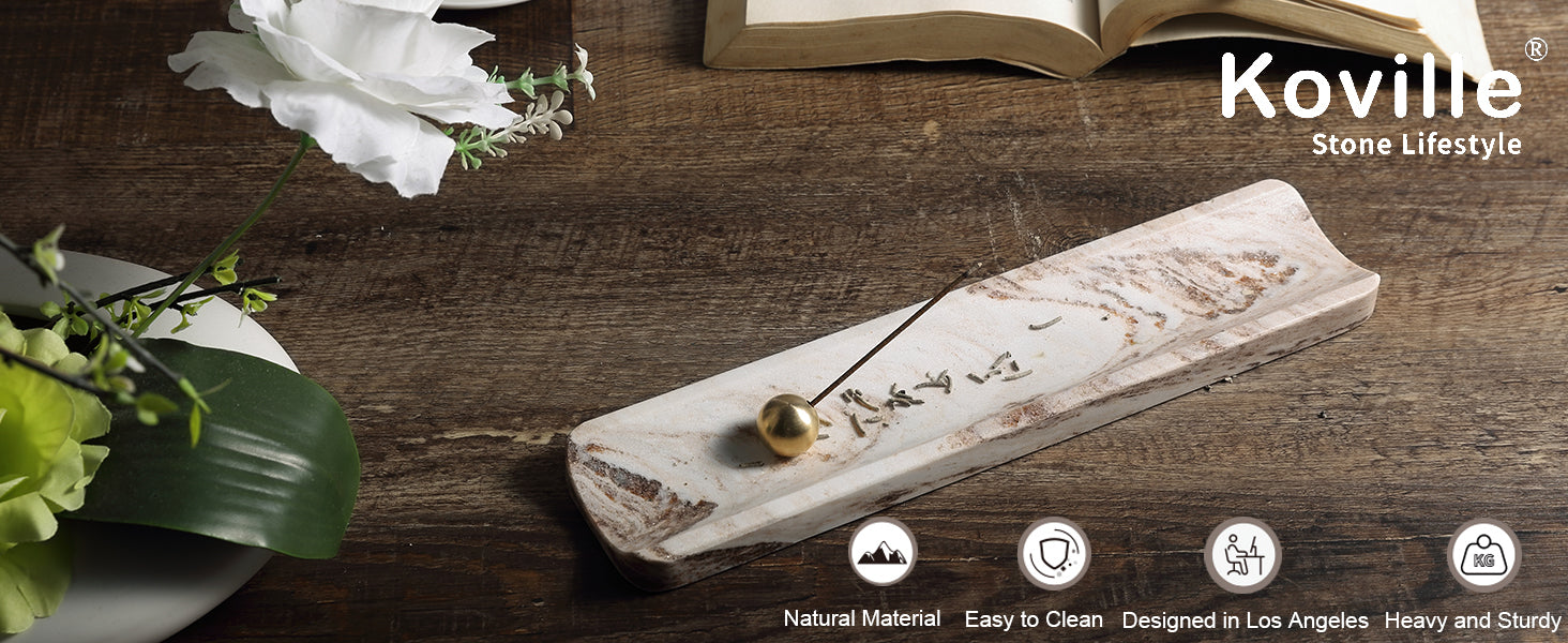 Elegant and Functional Design: The Koville natural marble incense burner is not just an incense holder; it's a statement piece. Its sleek, minimalist design blends practicality with aesthetics, providing a perfect place for your incense sticks. The 11-inch tray offers ample space to catch ash without creating a mess, while the high-quality marble ensures durability. Its clean lines and polished surface make it an elegant addition to any living room, office, or meditation space, helping create an atmosphere of calm and serenity.