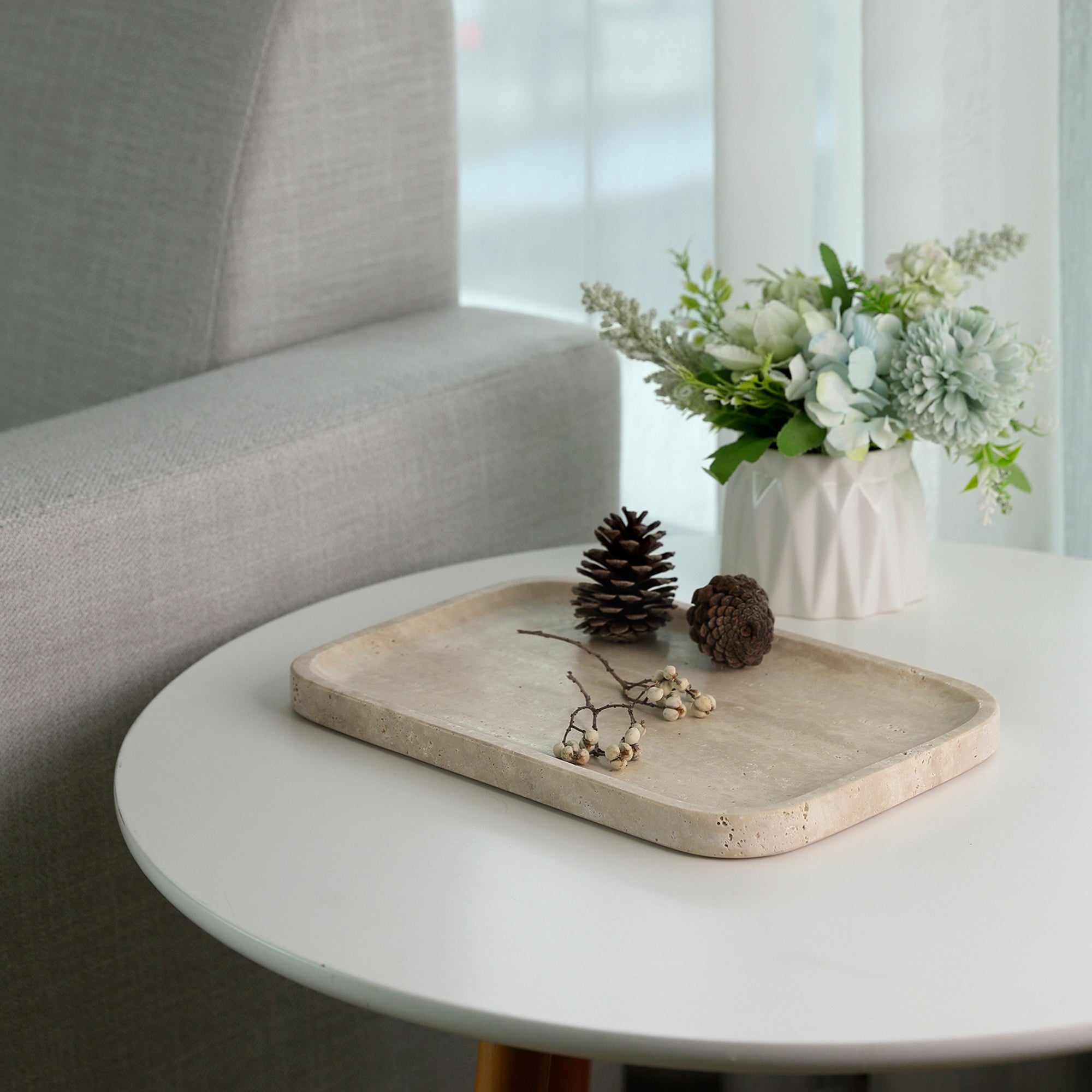 Use it to organize remote candles, or small decorative items on your coffee table or console. Its sleek, minimalist design allows it to blend seamlessly into any living space. Whether you're showcasing your favorite decor pieces or keeping everyday essentials tidy, this tray brings a stylish and organized look to your living room, enhancing both the practicality and aesthetic of the space.