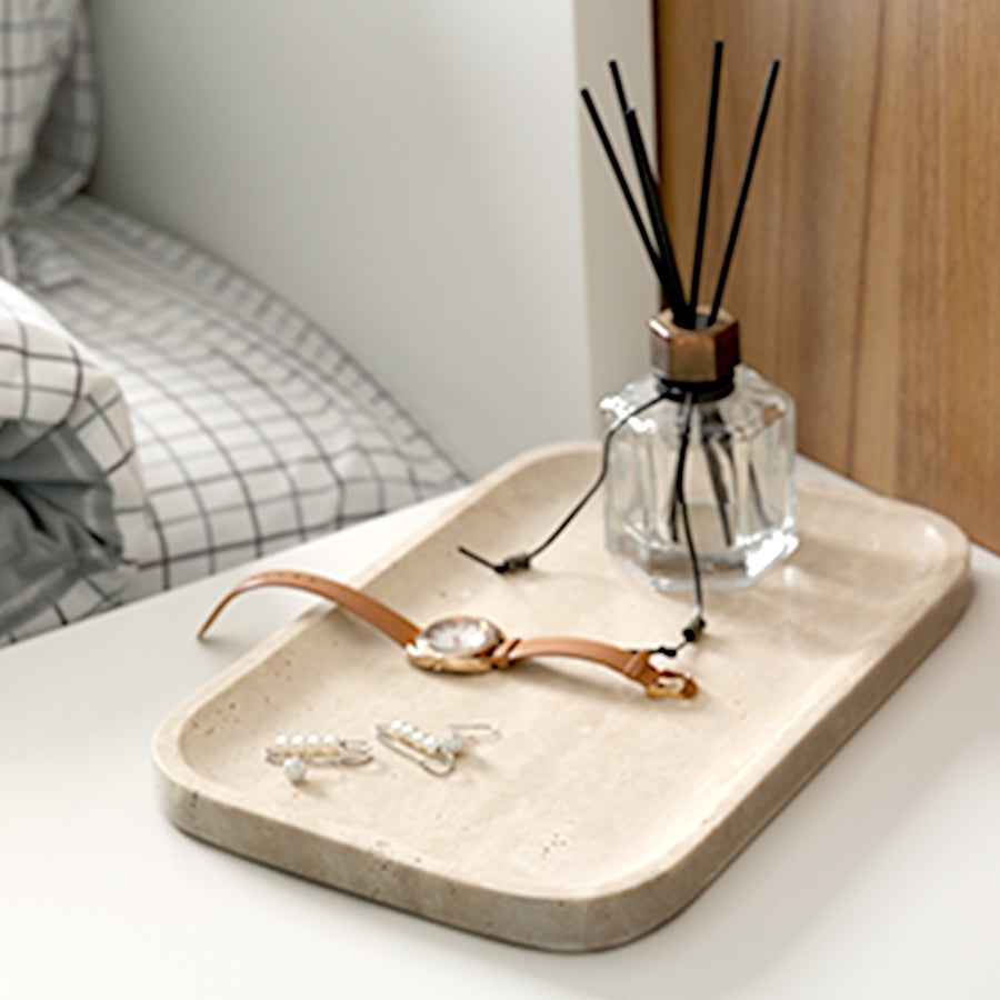 Add a touch of luxury to your bedroom with the Natural Marble Rectangle Tray, the ideal storage solution for small items like jewelry, watches, perfumes, and trinkets. Placed on your bedside table or dresser, this tray not only keeps your essentials neatly organized but also serves as an elegant decor piece. The natural marble veining creates a timeless and sophisticated look, elevating the room's ambiance.