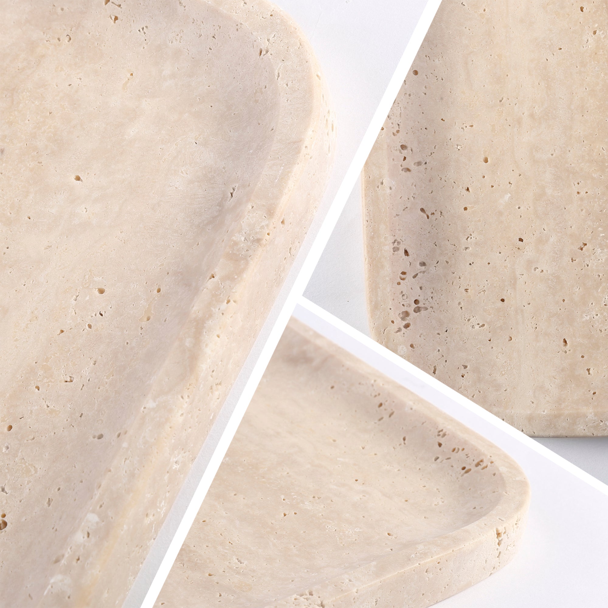 Premium Natural Marble Crafts: The Koville natural marble tray is crafted from authentic travertino romano, a stone shaped over millions of years by geological forces. This exquisite marble features intricate veins and natural pore patterns, making each tray truly unique. The soft, creamy white and delicate yellow hues add a touch of warmth and sophistication, ensuring this tray remains a timeless and elegant addition to any home decor.