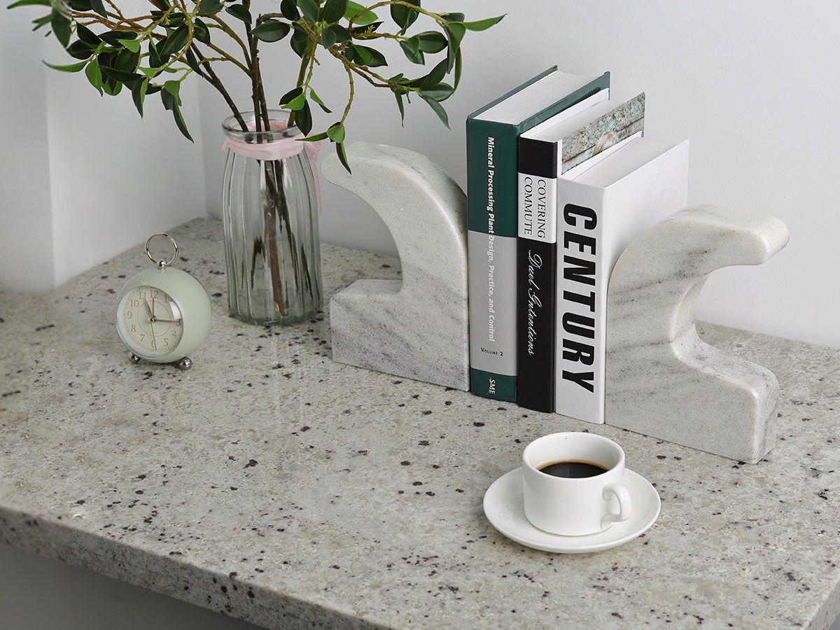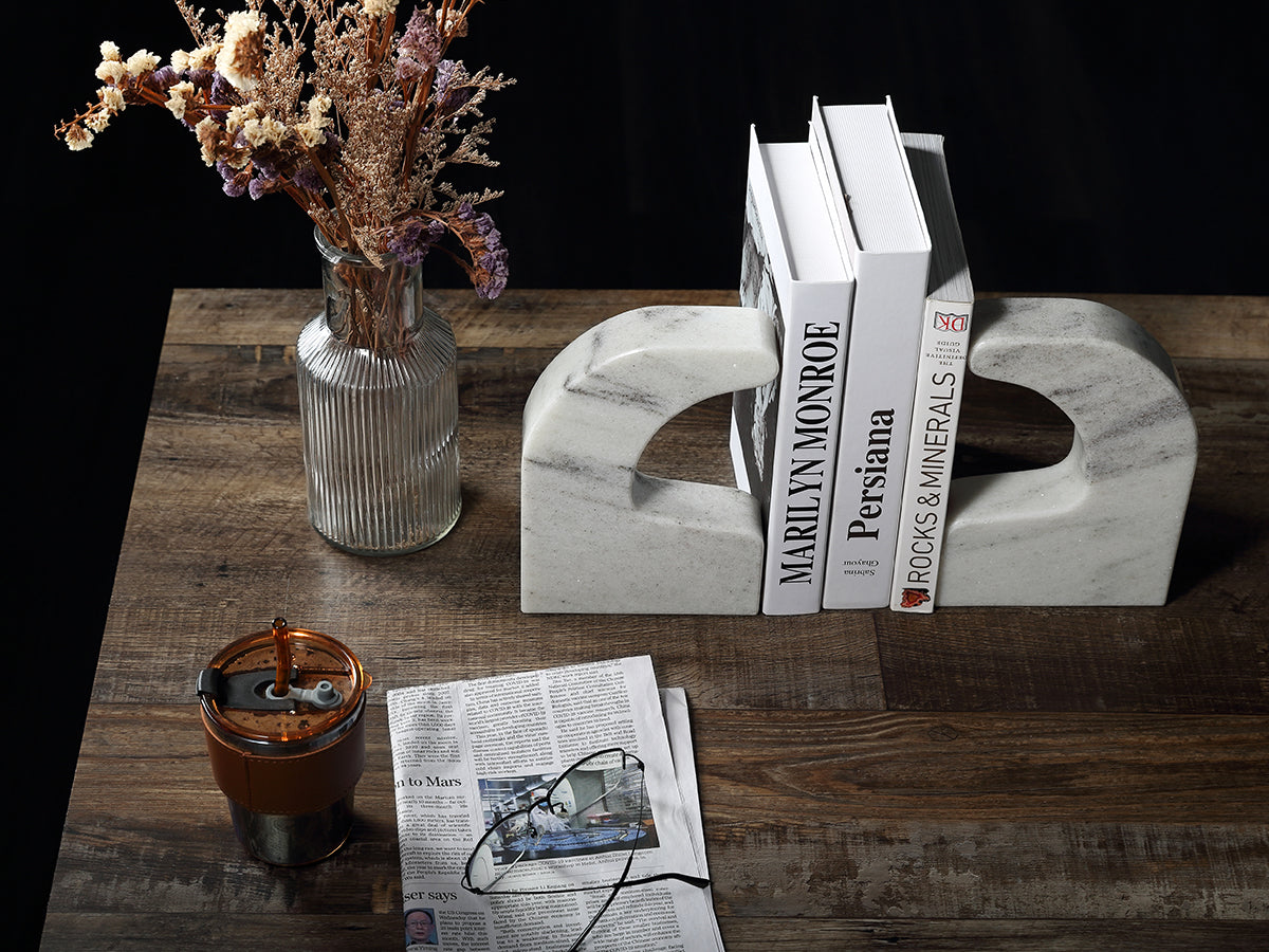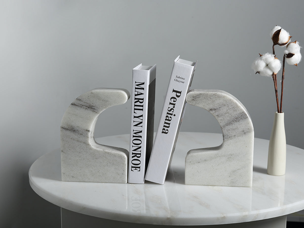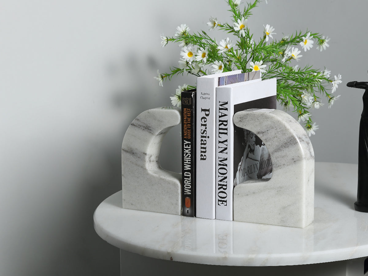 The solid marble construction not only ensures a robust base for your books but also elevates the aesthetic of any room. This combination of functionality and sophisticated design makes it a must-have for your home or office.