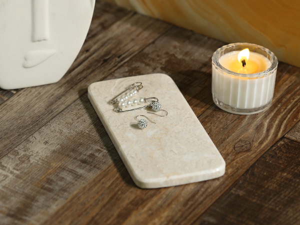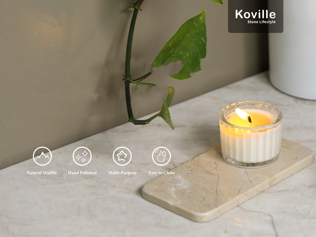 Premium Crema Beige Marble: The Koville natural marble tray is crafted from luxurious Crema Beige Marble, sourced directly from the heart of Turkey. Its soft, warm beige shade, reminiscent of the gentle light of dawn, creates an inviting and serene atmosphere. Each tray tells a story through its intricate patterns, evoking the rich mysteries of ancient Turkish culture. The blend of creamy white and light yellow tones adds a timeless elegance, making it the perfect accent piece for any home decor.