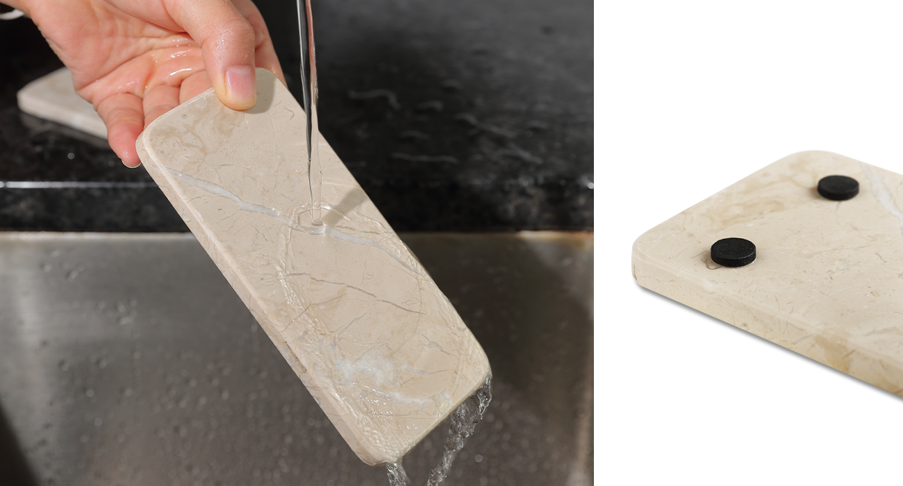 Non-Slip Base for Added Security: Thoughtfully designed with anti-slip pads at the bottom, this marble tray stays securely in place while preventing water accumulation. This feature helps keep your countertops dry and clean, whether in the bathroom or kitchen. The anti-slip pads also protect your surfaces from scratches, ensuring both safety and style during everyday use.