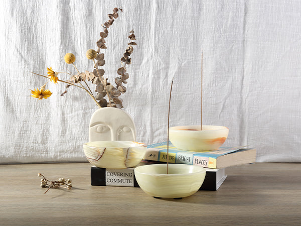 Durable and heavy-duty Structure: This natural Onyx incense holder is designed for durability, with a solid structure that provides stability while in use. The heavy-duty Onyx ensures that the incense holder stays securely in place, preventing any tipping or movement. The weight of the holder also contributes to its premium feel, making it a long-lasting addition to your collection of home decor, ready to withstand daily use without losing its elegance.