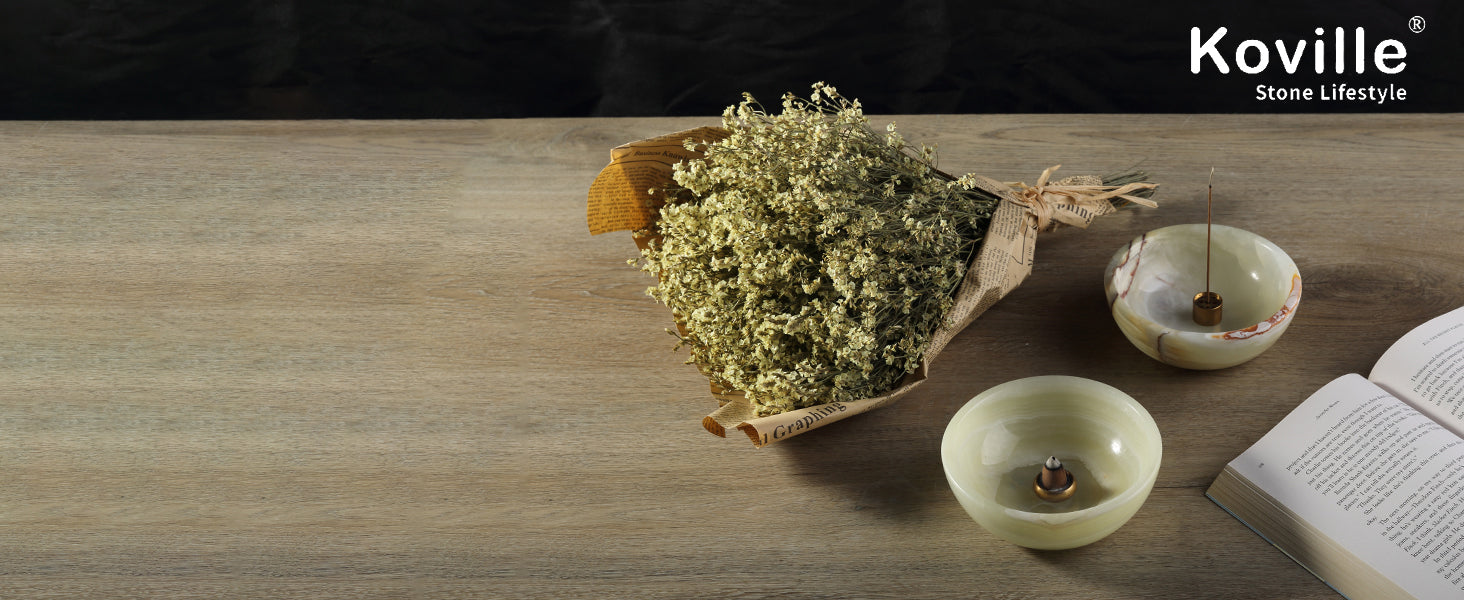 Premium Natural Onyx from Turkey: The Koville natural Onyx incense holder is crafted from premium Onyx sourced from Turkey, a country renowned for its rich stone resources. This luxurious incense holder features natural veins and a glossy finish that brings both elegance and warmth to any space. The natural beauty of the Onyx, combined with its smooth surface, creates a unique and artistic piece, perfect for adding a touch of sophistication to your home or office.