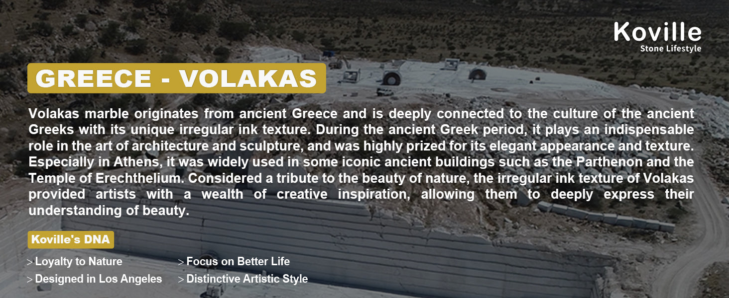 Luxury Real Marble: Volakas marble originates from ancient Greece and is deeply connected to the culture of the ancient Greeks with its unique irregular ink texture. During the ancient Greek period, it plays an indispensable role in the art of architecture and sculpture, and was highly prized for its elegant appearance and texture.