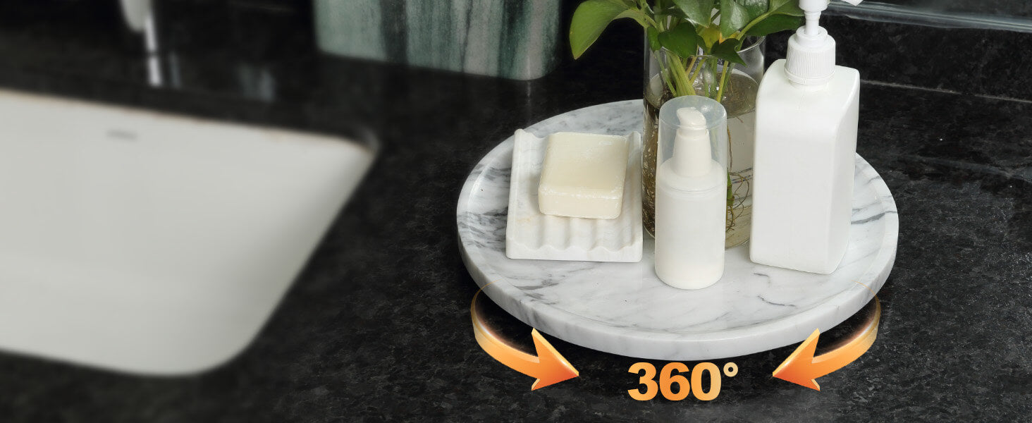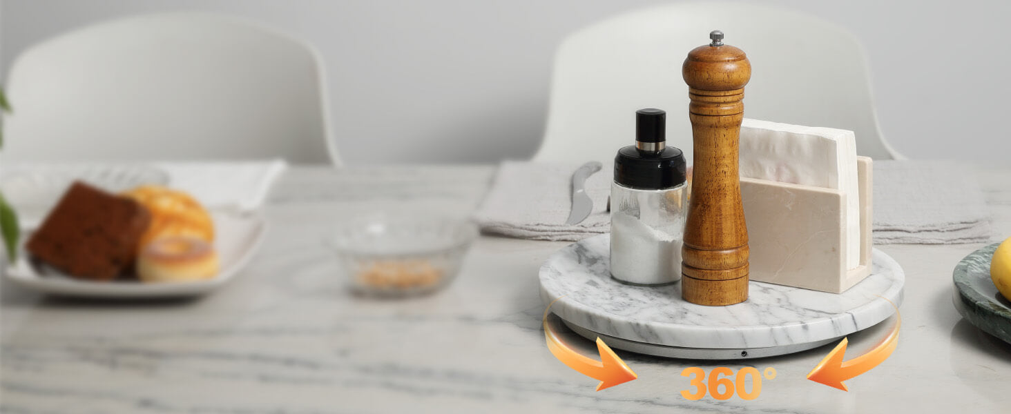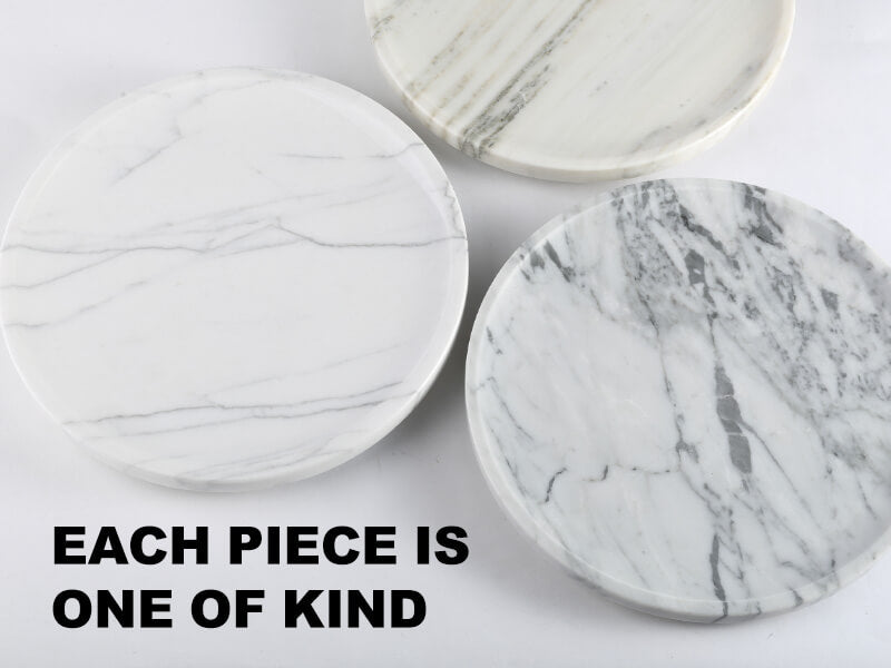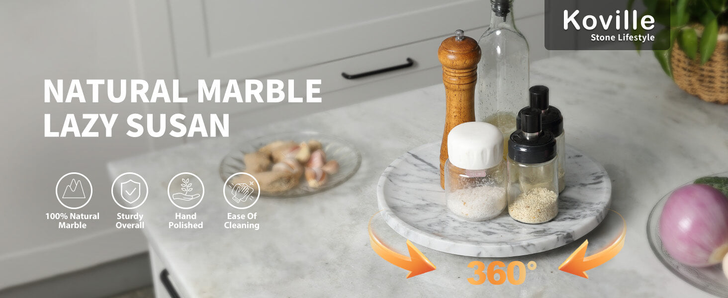 Premium Material: Made of 100% genuine natural marble with beautiful unique patterns, this marble Lazy Susan is sturdy and durable for long-lasting uses. Each round marble turntable tray is the one and only. Please note that the color and texture may differ slightly from the pictures due to natural variations in marble.