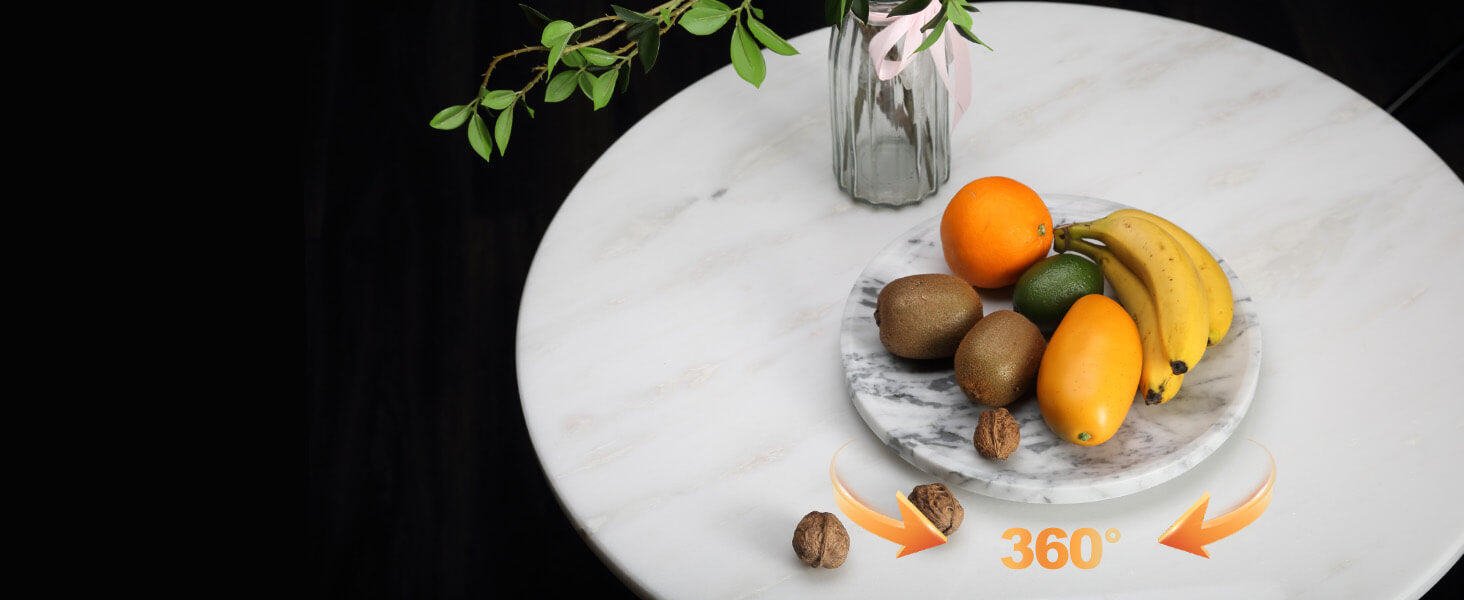 Smoothly 360-Degree Rotate: Koville Lazy Susan cheese board is designed with hidden high-precision steel ball-bearing base, allowing the turntable to spin 360 degrees clockwise or counterclockwise smoothly and silently, great for both left and right-handed users to access anything on the marble serving plate easily.