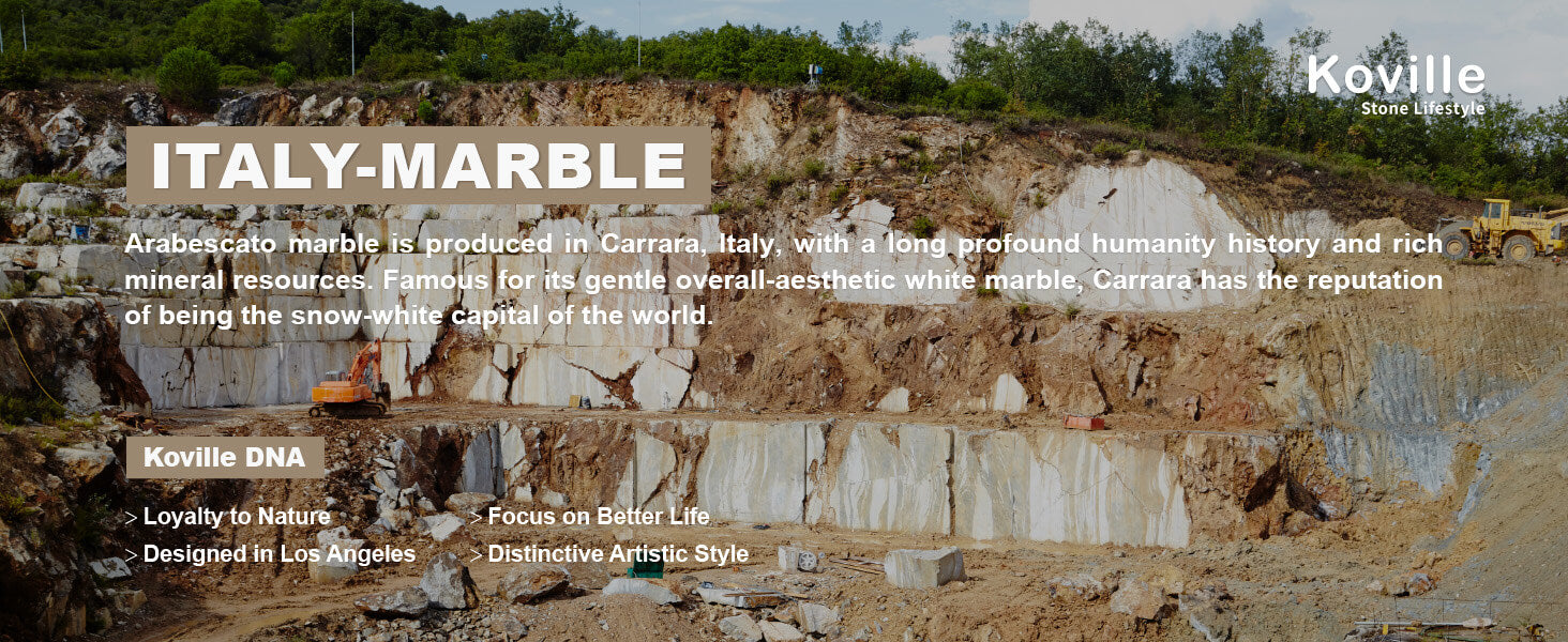 Luxury & Unique Marble: Arabescato marble is produced in Carrara Italy, with a long profound humanity history and rich mineral resources. White base color but not greasy, with a smooth and well-coordinated gray texture. The different distribution and presentation of natural stone crystals and textures make each piece unique.