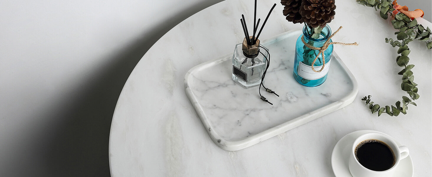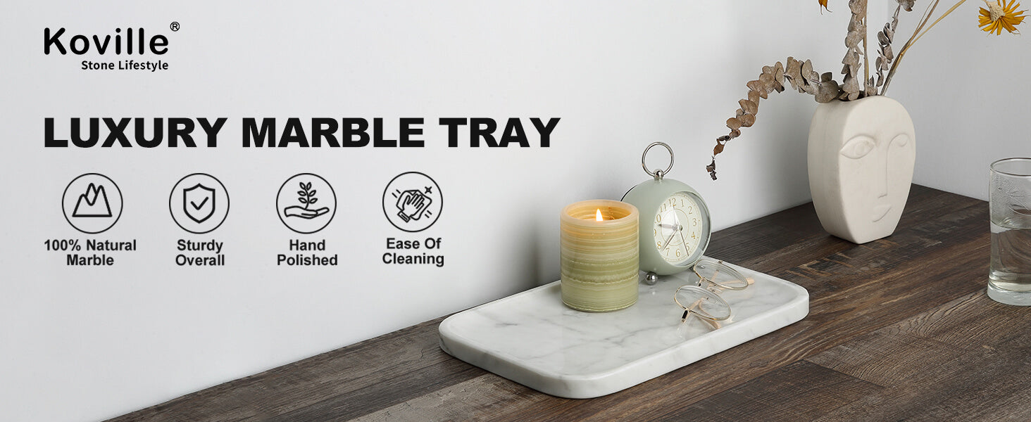 EASY TO MAINTAIN: The marble tray is waterproof, oil-proof, and scratch-resistant. The smooth one-piece corner after finely hand-polishing makes this serving tray more sturdy overall. The polished finish makes it shiny and easy to clean. If dust is attached to the surface, gently wipe it with wet wipes.