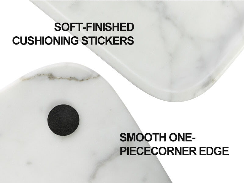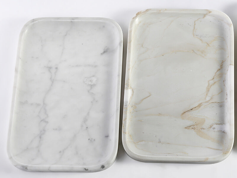 100% NATURAL MARBLE: The marble trays use 100% high-quality natural Statuario marble stone. Statuario marble is produced in Italy, famous for its overall soft and beautiful white marble texture. The different distribution and presentation of natural stone crystals and textures make each piece unique. Unlike ordinary plastic, resin, or PU material, the natural marble tray is much sturdier while possessing exquisite shine and texture.