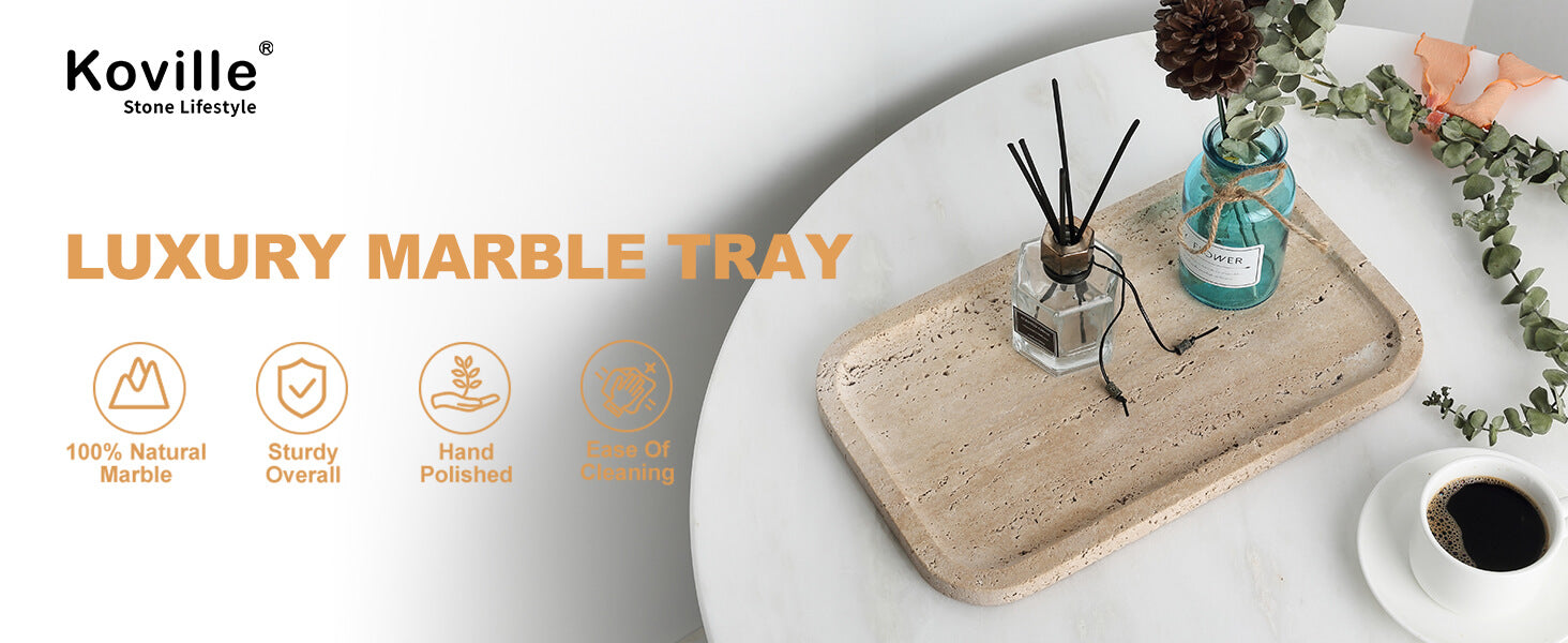 𝐍𝐚𝐭𝐮𝐫𝐚𝐥 𝐃𝐮𝐫𝐚𝐛𝐥𝐞 𝐌𝐚𝐫𝐛𝐥𝐞: Consisting of 100% genuine marble, this natural vanity tray has an innate solidity and quickly adds a classy modern touch anywhere in your home, kitchen, bathroom washstand, living room, bedroom, coffee table, or dresser.