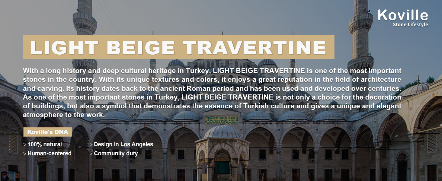 Italian Natural Travertine: Travertino Romano were formed through geological processes over millions of years, subject to pressure and heat. Their tiny pore structure is one of the most distinctive features of travertine, giving them a unique texture and pattern that creates a variety of pleasing visual effects. These pores form detailed veins and bold granite flecks in warm cream or pale yellow tones, giving a sense of warmth, elegance and uniqueness.