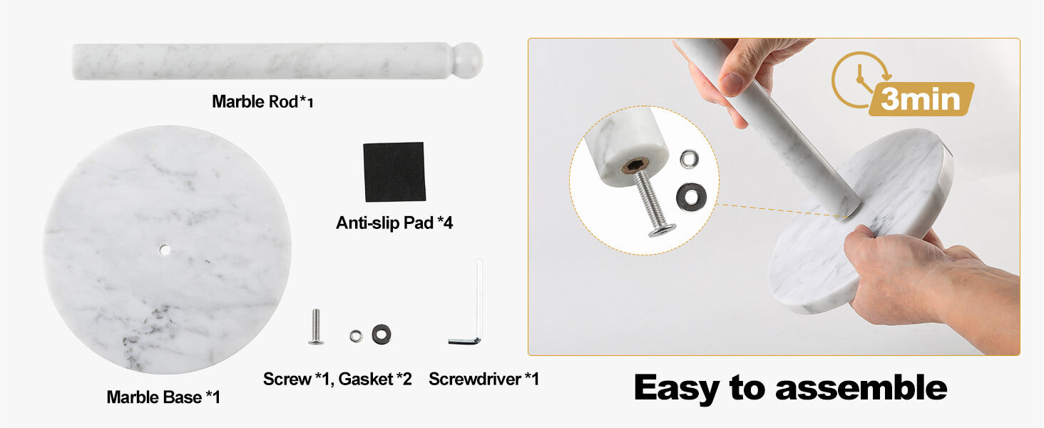 Easy to Install: The base is made of natural textured marble, the base and marble rods are easily disassembled, and the rounded bottom is designed to be moved at will, making it easy to clean the table top and easy to clean after daily disassembly needs.
