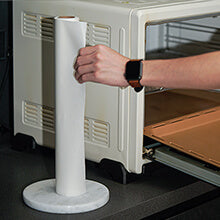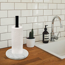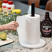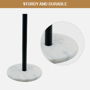 Koville’s high quality paper towel holder, the base is made of heavy marble polished, smooth and delicate touch surface, the middle metal rod and marble base keep the paper towel holder sturdy and won't tip over.