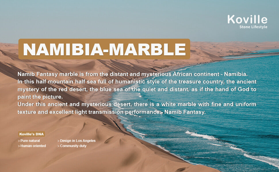 Luxury Africa Marble: Namib Fantasy marble is from the distant and mysterious African continent - Walvis Bay, Namibia: the ancient mystery of the red desert, the blue sea of the quiet and distant. Koville's passion for natural stone drives us to provide you with luxurious and stylish stone products.