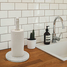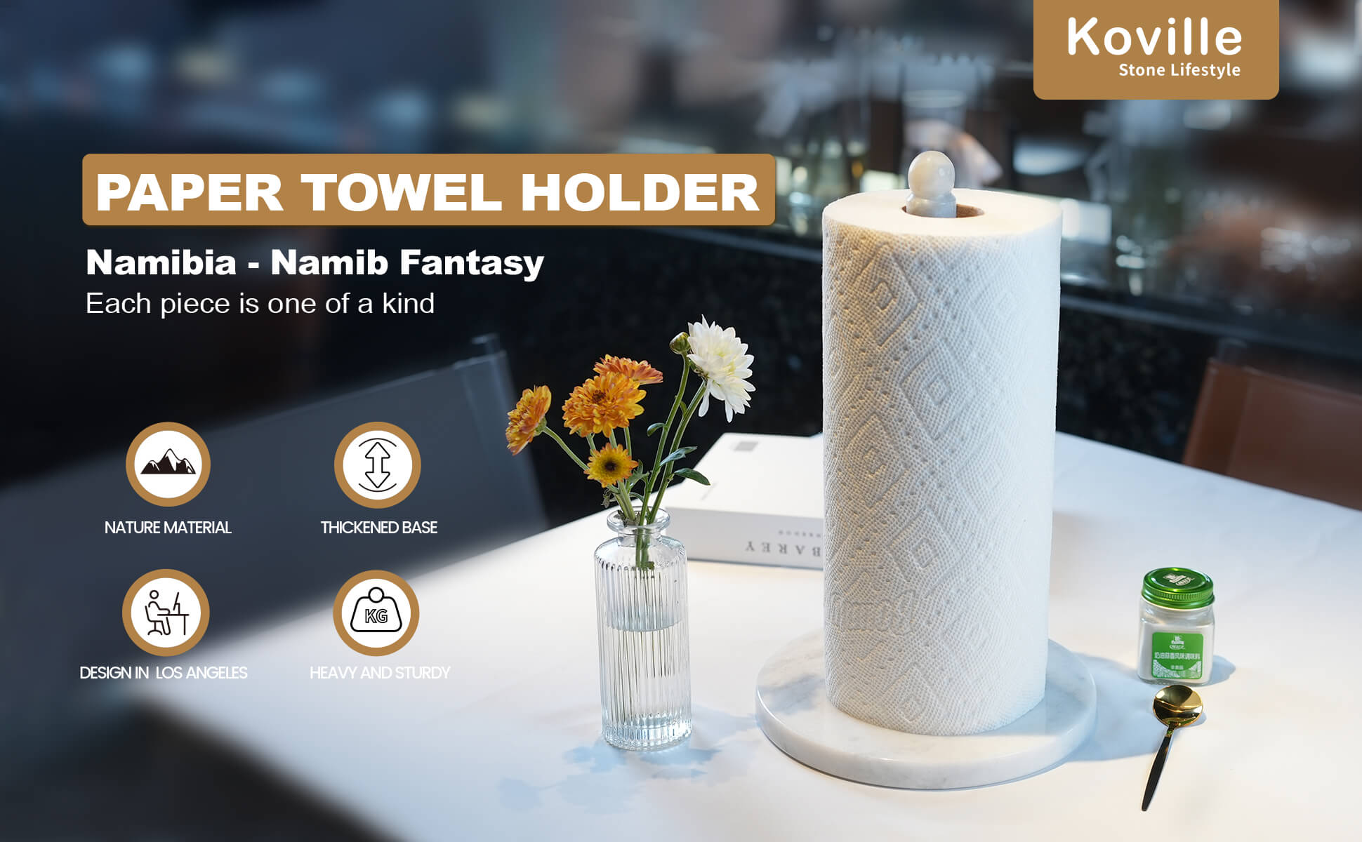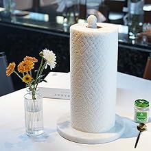 Koville high quality paper towel holder, made of heavy marble polished, smooth and delicate touch surface,marble base keeps the paper towel holder sturdy and won't tip over.