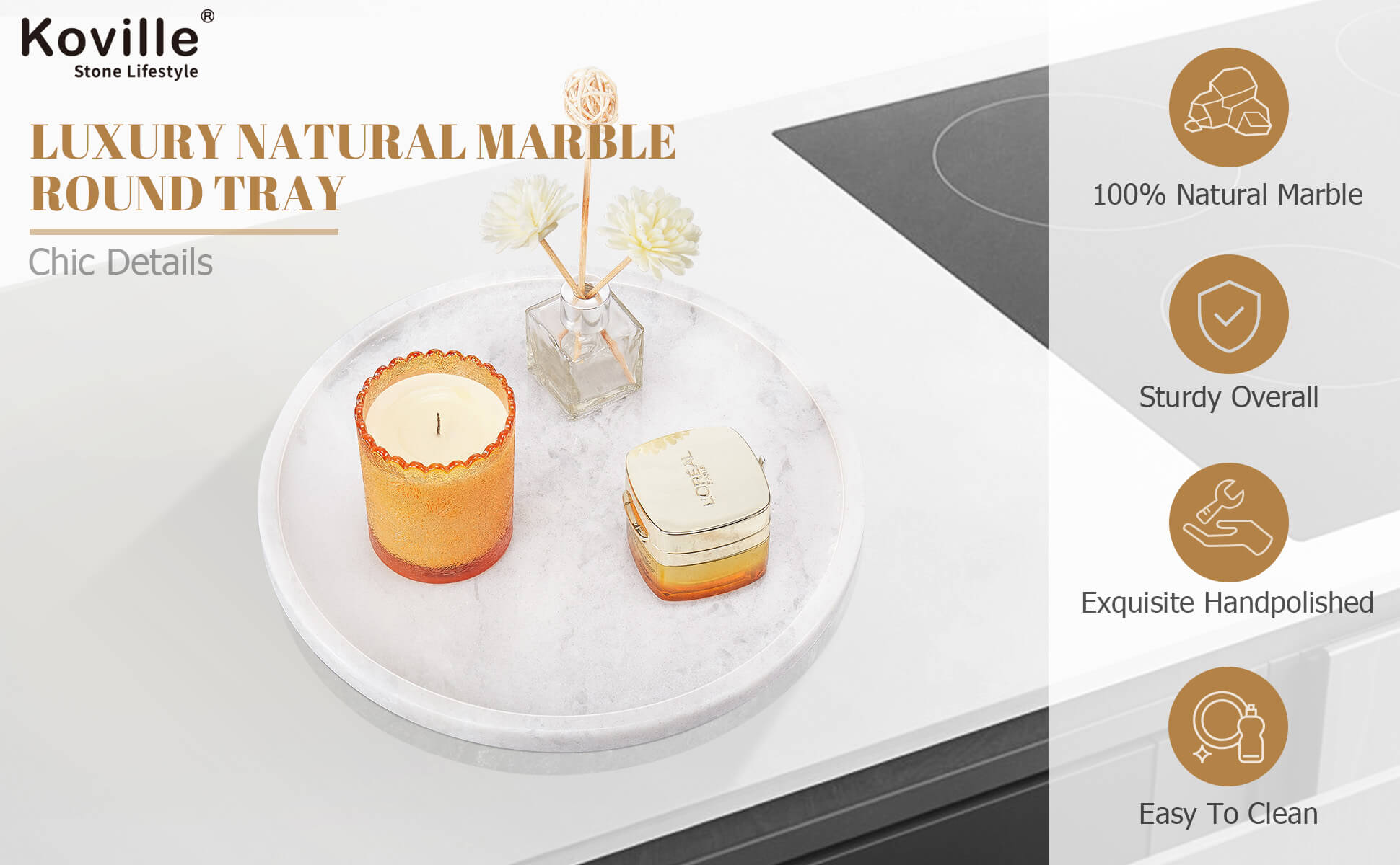 ๐๐จ๐๐๐ซ๐ง ๐๐๐ง๐ฎ๐ข๐ง๐ ๐๐๐ซ๐๐ฅ๐: Consisting of 100% marble, this natural decorative vanity tray has an innate solidity and easily adds a classy modern touch anywhere in your home, kitchen, bathroom washstand, living room, bedroom, coffee table or dresser.