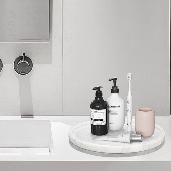 Organize your bathroom essentials in style with our marble round tray. Made from exquisite natural stone, this tray combines beauty and functionality. Display your toiletries and accessories with elegance, transforming your bathroom into a serene and stylish space.