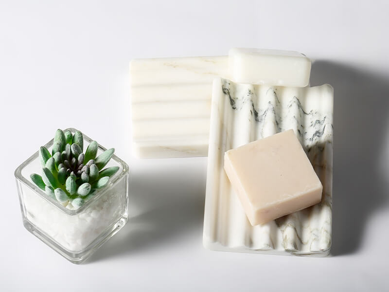 Dual Applicatio: Our marble soap saver is designed with deep grooves that serve a dual purpose - to keep your soap bar dry and to make it easy to pick up the bar even as it becomes thin. You won't have to worry about your soap bar slipping out of your hand or becoming mushy due to dampness. With its easy-to-clean surface, simply wipe the soap tray with a damp cloth to keep it looking brand new.