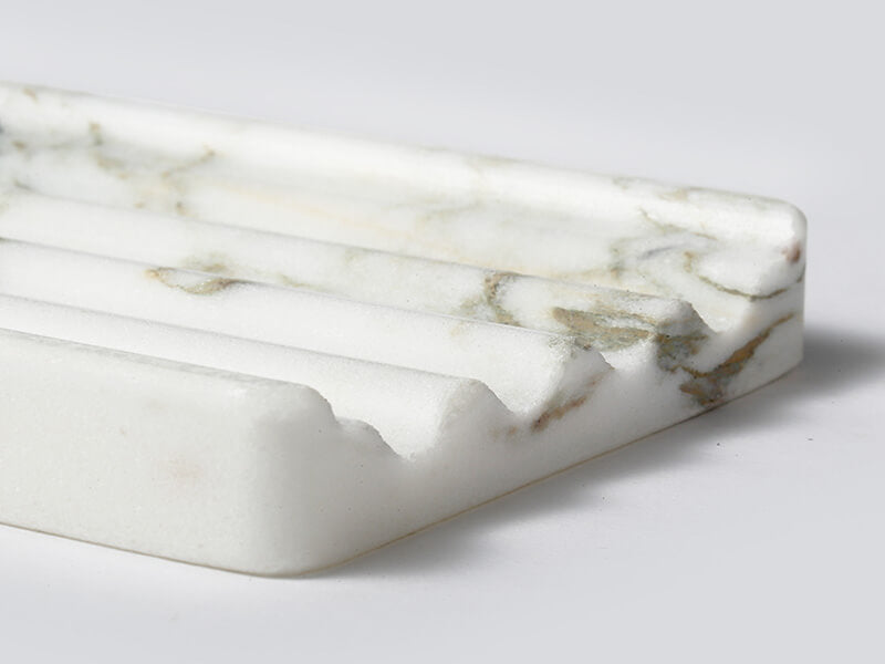 Unique of Each Piec: The delicate layered texture of the selected Italy Bianco Carrara Marble soap dish mixes with the beautiful soft grey texture, presenting a picture flowing like a river, depicting the beautiful artistic design of the nature of Bianco Carrara. The different distribution and presentation of natural stone crystals and textures make each piece soap bar holder unique.