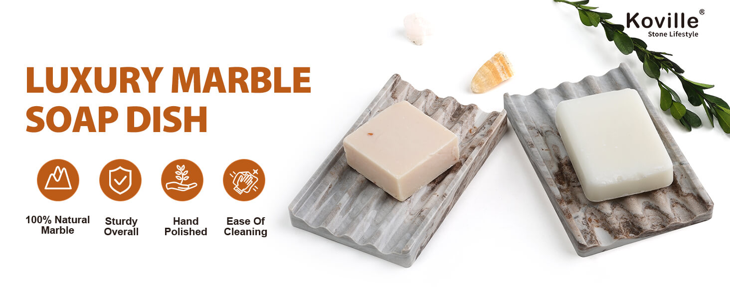 Handcrafted Durable Marble: Crafted from 100% natural marble, this handpolished soap holder is not only built to last but also a true work of art, making it the perfect addition to your bathroom or kitchen. Each bar soap holder is one-of-a-kind, adding a touch of elegance and sophistication to any space, whether it be in your home or a luxurious hotel.