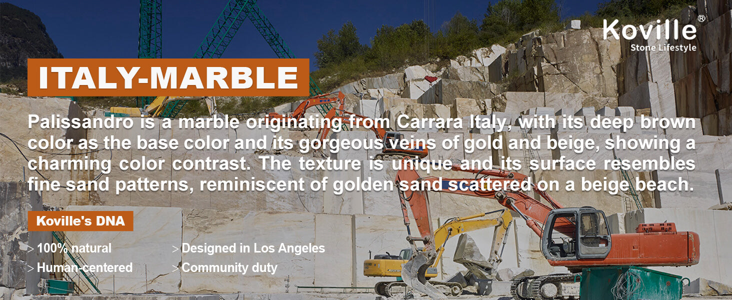 Luxury Palissandro: Palissandro marble originating from Carrara Italy, with its deep brown color as the base color and its gorgeous veins of gold and beige, showing a charming color contrast. Koville's passion for natural stone drives us to provide exquisitely crafted and luxurious stone products.