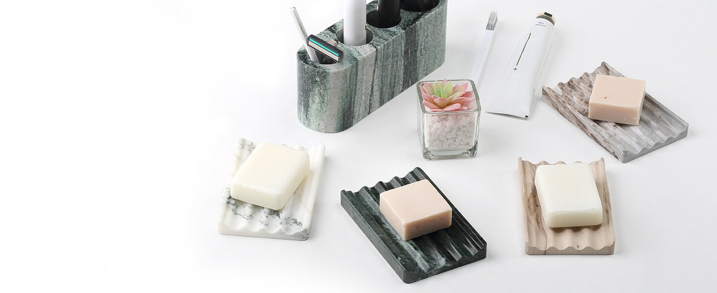 Dual Application: Our marble soap saver is designed with deep grooves that serve a dual purpose - to keep your soap bar dry and to make it easy to pick up the bar even as it becomes thin. You won't have to worry about your soap bar slipping out of your hand or becoming mushy due to dampness. With its easy-to-clean surface, simply wipe the soap tray with a damp cloth to keep it looking brand new.