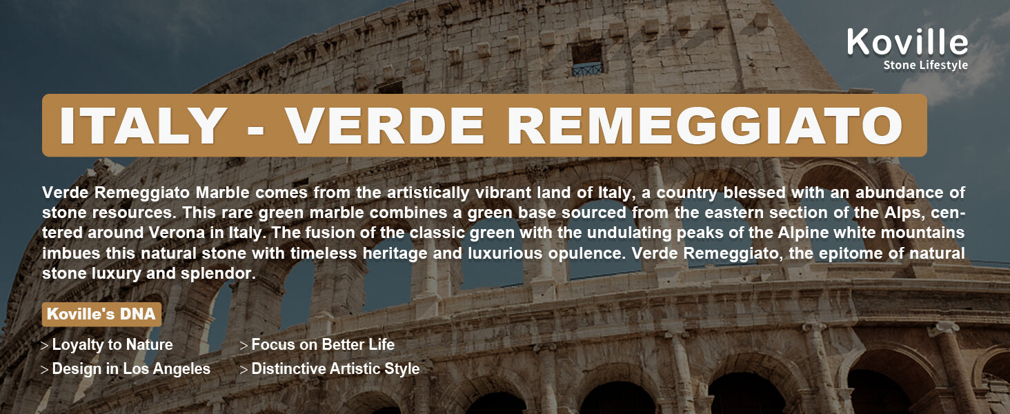 Luxury Italian Marble: Verde Remeggiato marble is from the art-filled Italy, Italy stone resources are extremely rich, Verde Remeggiato is a rare green marble, green base using the green marble from the eastern section of the Alps centered in Verona, Italy, when the classic green and the high and low rolling Alpine white mountains into one, giving the natural stone material classic heritage and noble luxury.