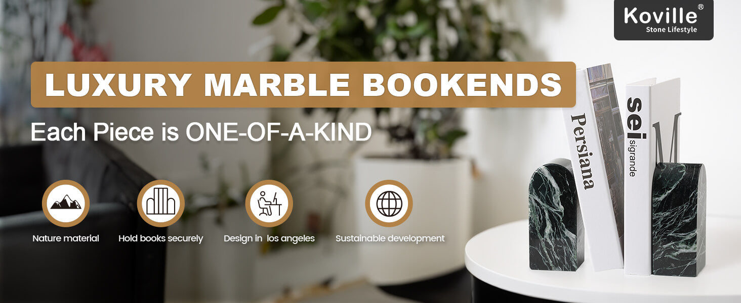 Enhanced Stability: Each set of Koville marble bookends includes four anti-slip pads that ensure a secure grip on any surface, Weighted 7lbs, preventing your books from toppling over. Also a thoughtful gift that adds both beauty and practicality to any space.