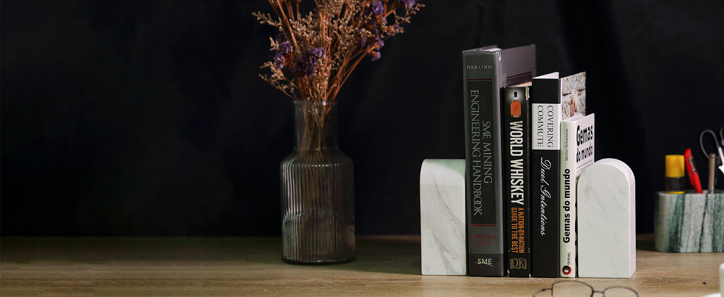 One-of-a-Kind Beauty: Each pair of bookends showcases distinct natural stone patterns, guaranteeing that yours will be unique and stunning.