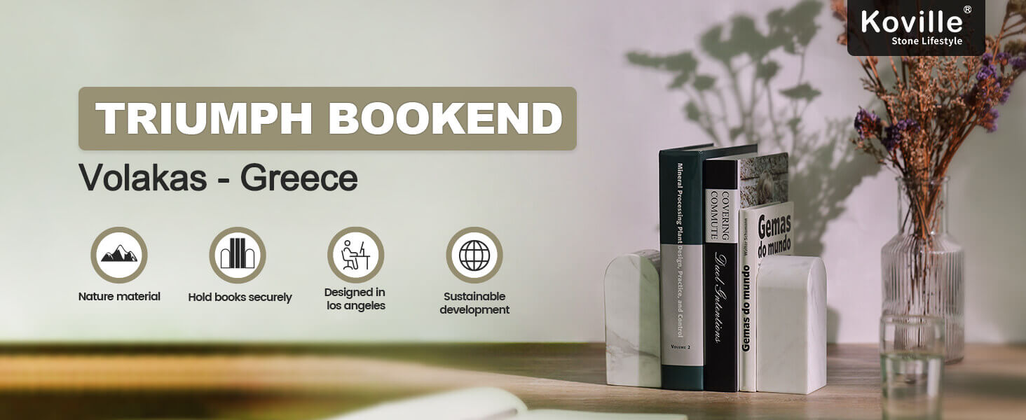 Enhanced Stability: Each set of Koville marble bookends includes four anti-slip pads that ensure a secure grip on any surface, Weighted 7LB, preventing your books from toppling over. Also a thoughtful gift that adds both beauty and practicality to any space.