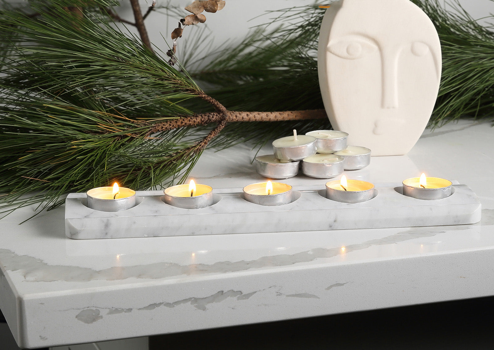 Koville 5 Holes Natural Marble Tea Light Candle Holder-Bianco Carrara