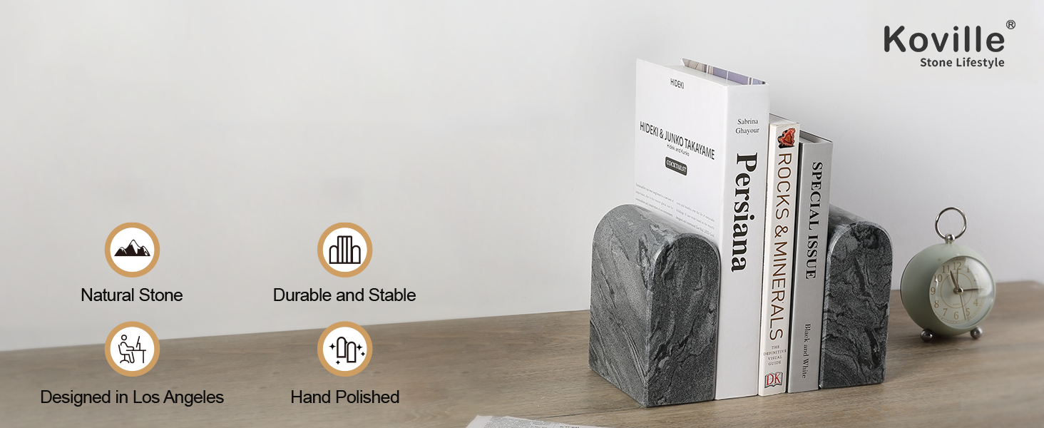 Exquisite Premium Natural Marble: The Koville natural marble triumphal arch bookend SE is made of high-quality, natural marble, known for its strength and durability sourced from Namibia. Each piece of marble boasts a one-of-a-kind pattern, creating a unique and luxurious look. This sterile, odorless, and harmless rich material not only elevates the aesthetic of your bookshelf but also guarantees long-lasting beauty, making it a timeless addition to any home or office.