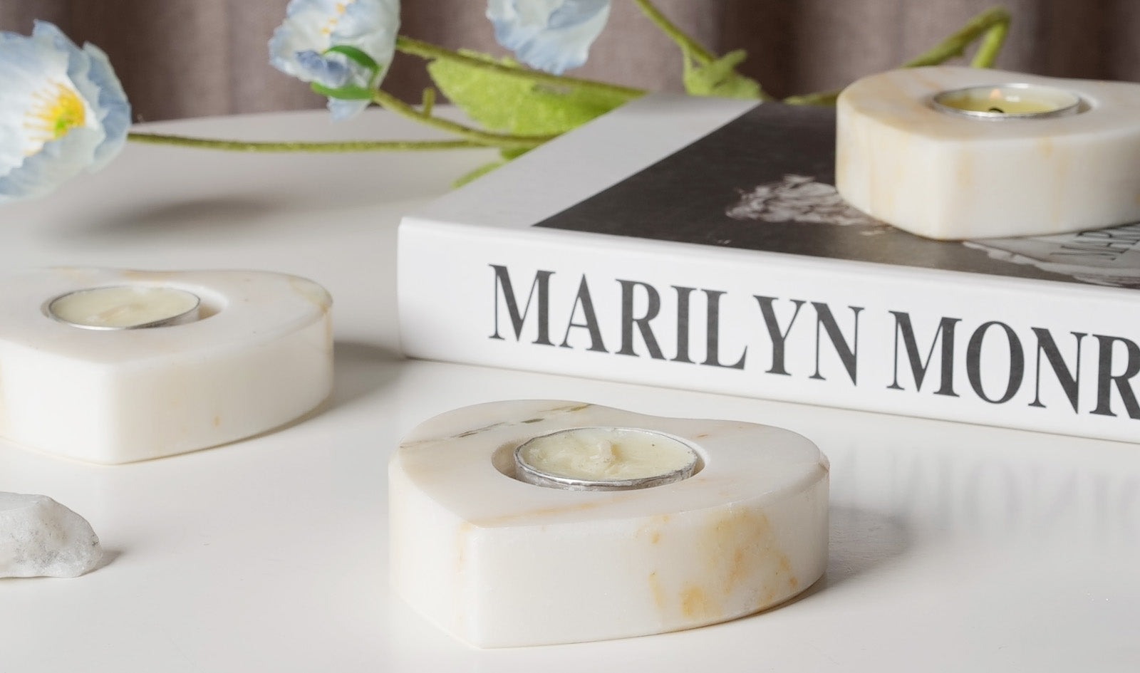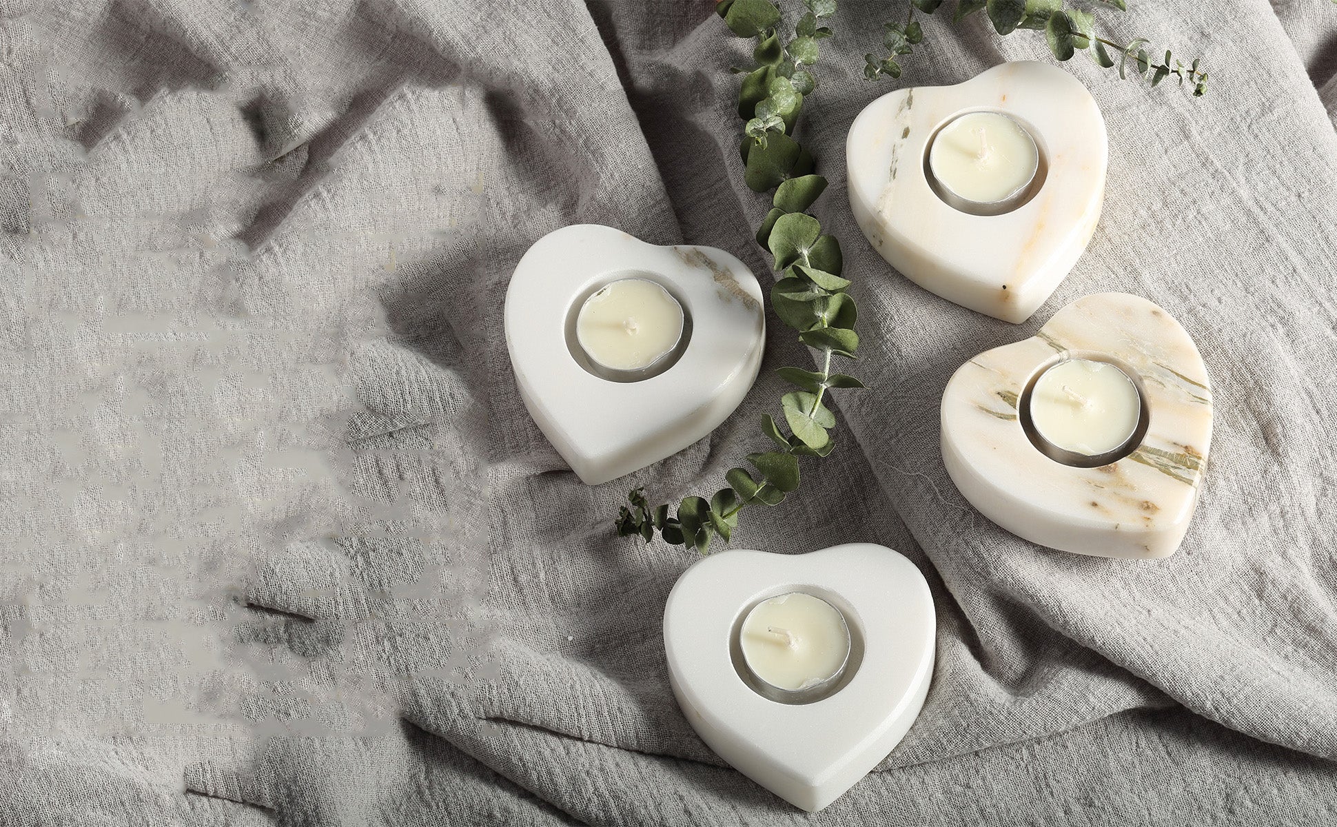 Koville Natural Marble Heart Shape Tea Light Candle Holder-Oriental Calacatta