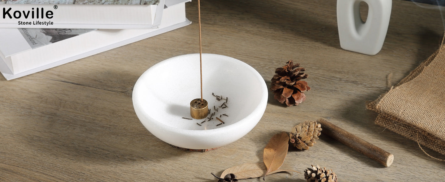 Sturdy and Well-Balanced for Secure Use: Designed for stability, the Koville natural marble incense holder features a solid, heavy base that keeps it securely in place during use. The substantial weight prevents tipping or sliding. Whether placed in a meditation room, living area, or office, this sturdy piece enhances your relaxation experience with both reliability and style.