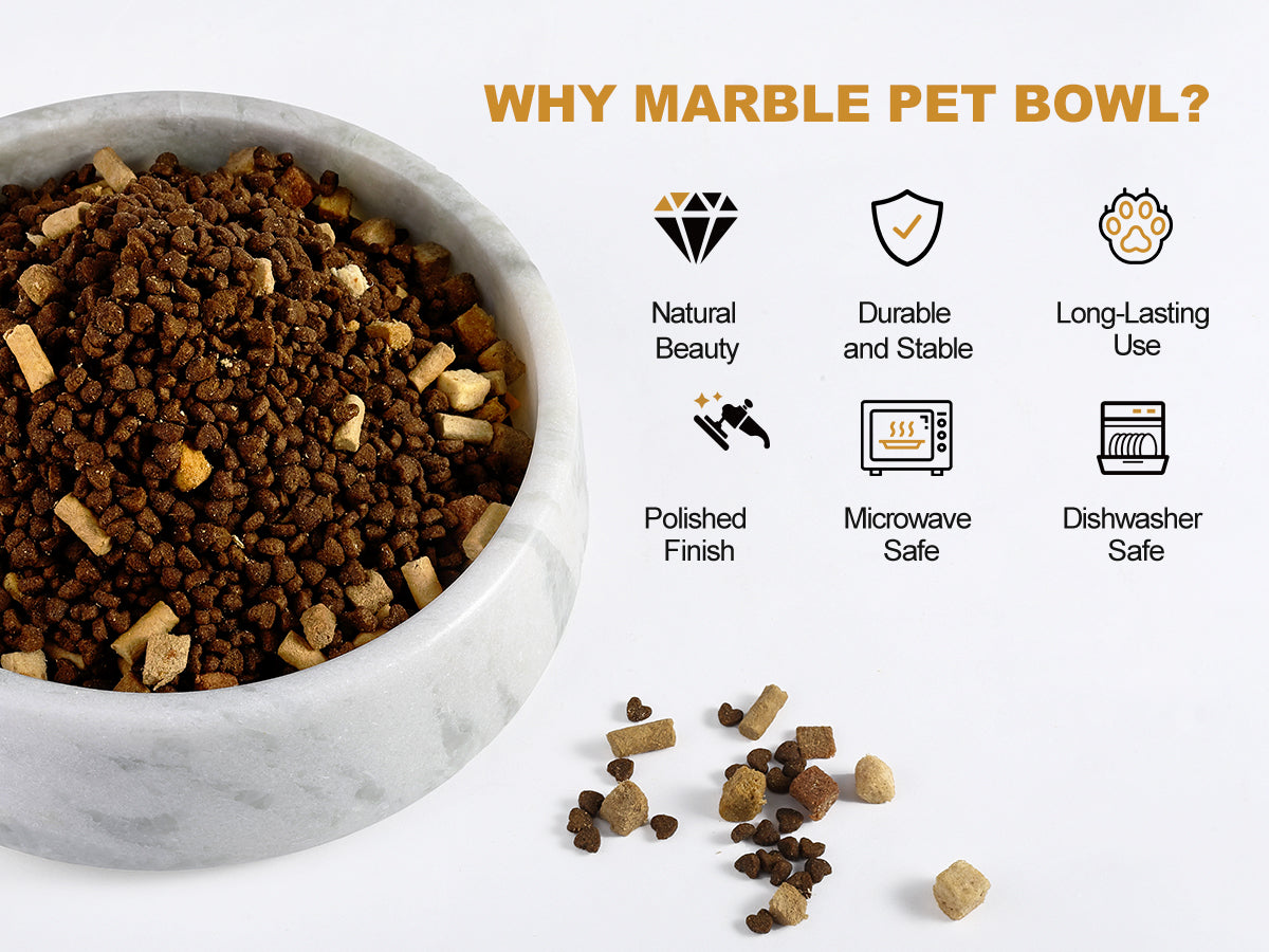 Easy to Clean and Hygienic: The smooth surface of the natural marble pet bowl prevents dirt and odors from sticking, making it easy to clean and maintain. Dishwasher-safe and simple to wash with warm soapy water, this bowl ensures a hygienic feeding environment for your pet. Spend less time cleaning and more time playing with your furry friend.
